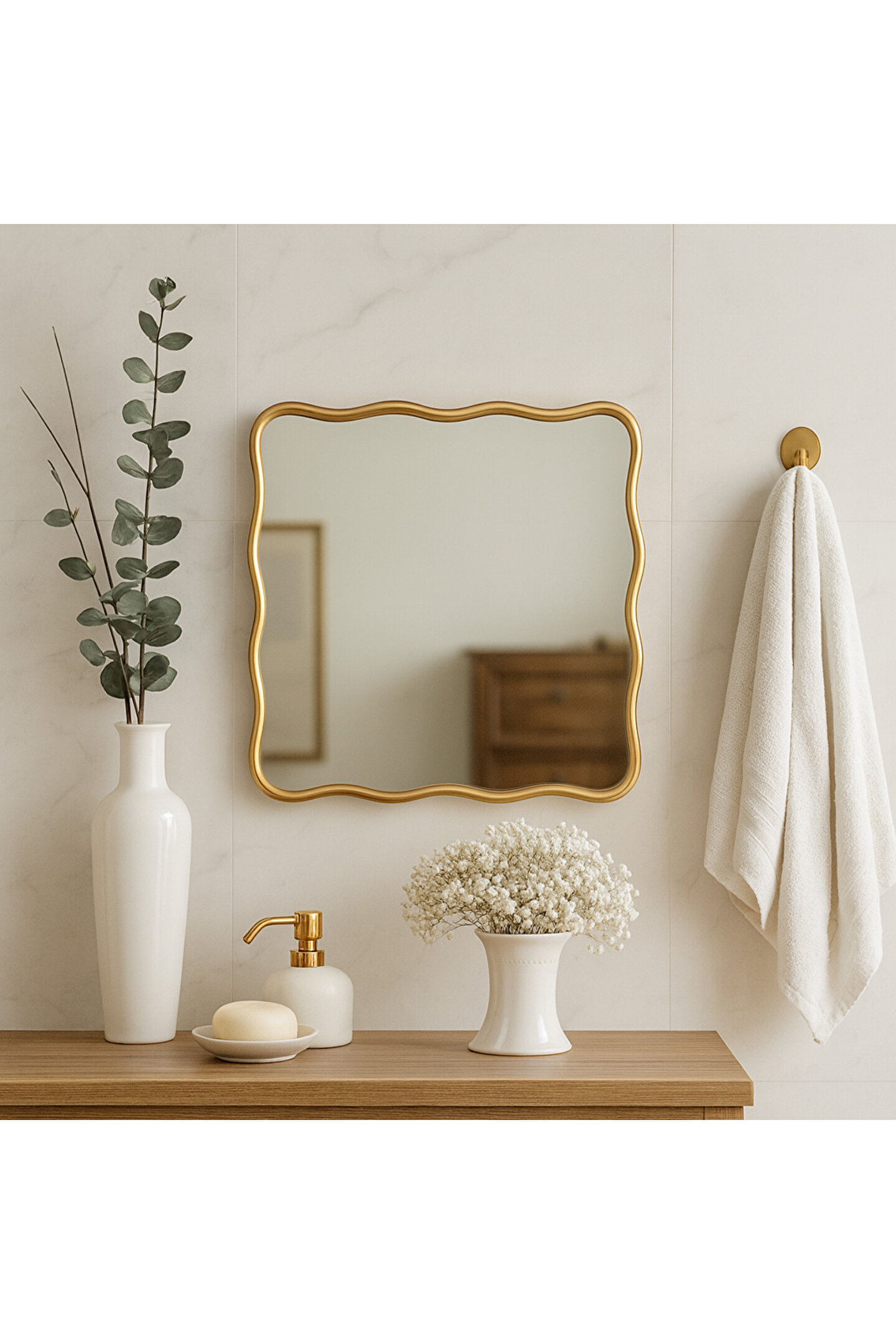 Narkissos Dizayn Kare Dalgalı Duvar Aynası Konsol Aynası Makyaj Aynası