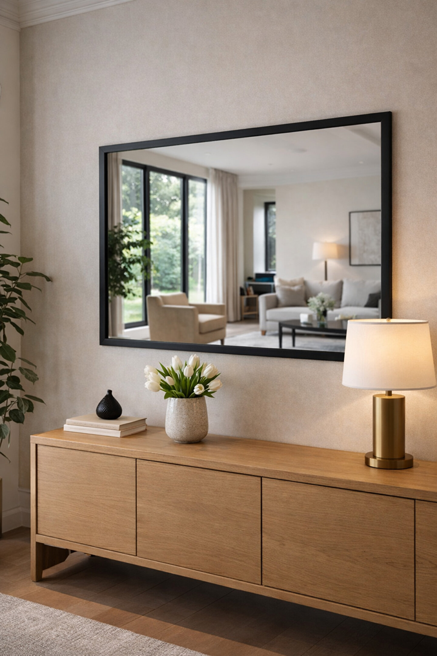 Narkissos Dizayn Siyah Çerçeveli Duvar Aynası & Boy Aynası-Özel Ölçü Seçenekleri-3cm Çerçeve Genişliği