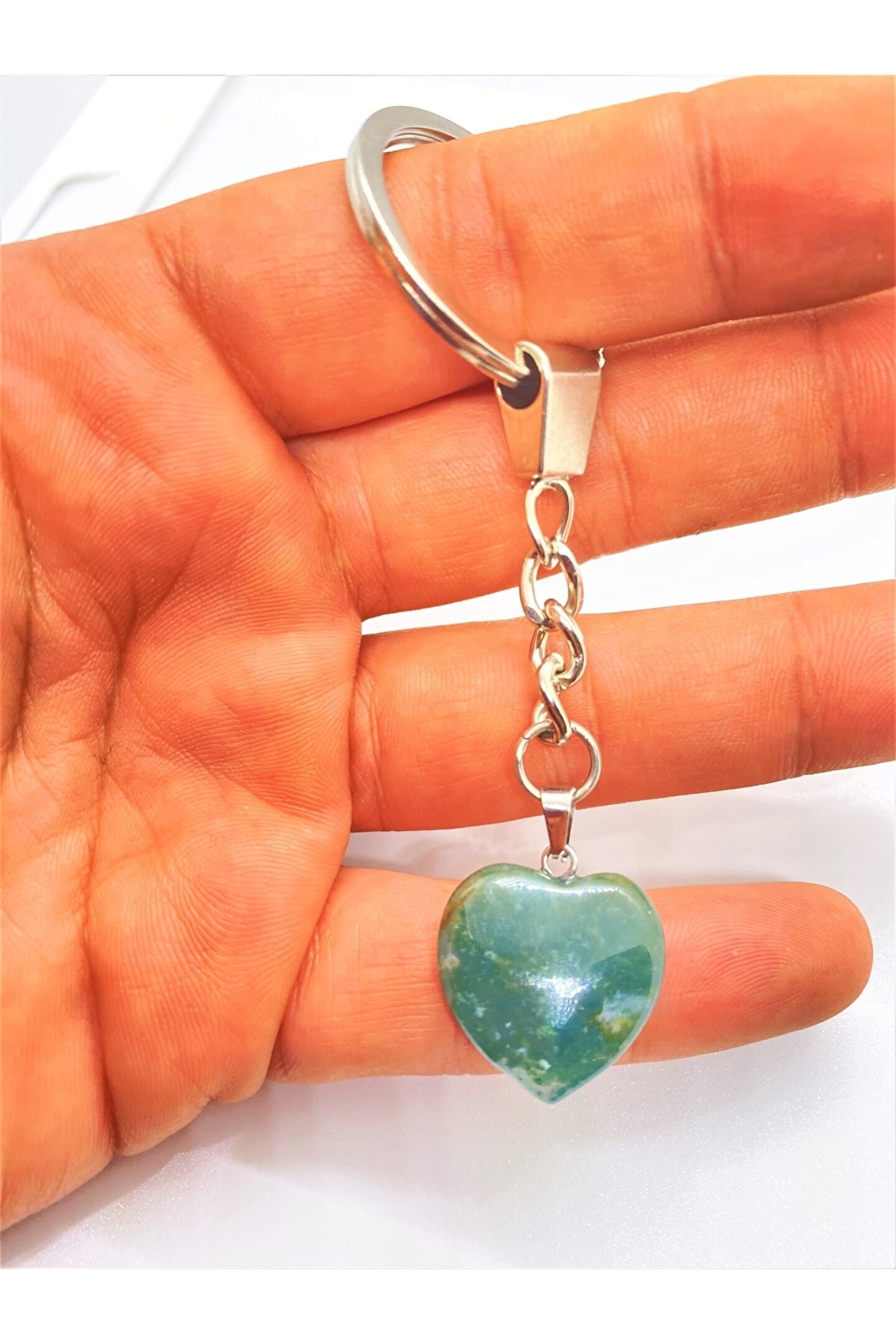 NATURALİM Hint Akik Taşı Doğal Taş Kalp Anahtarlık Hediyelik