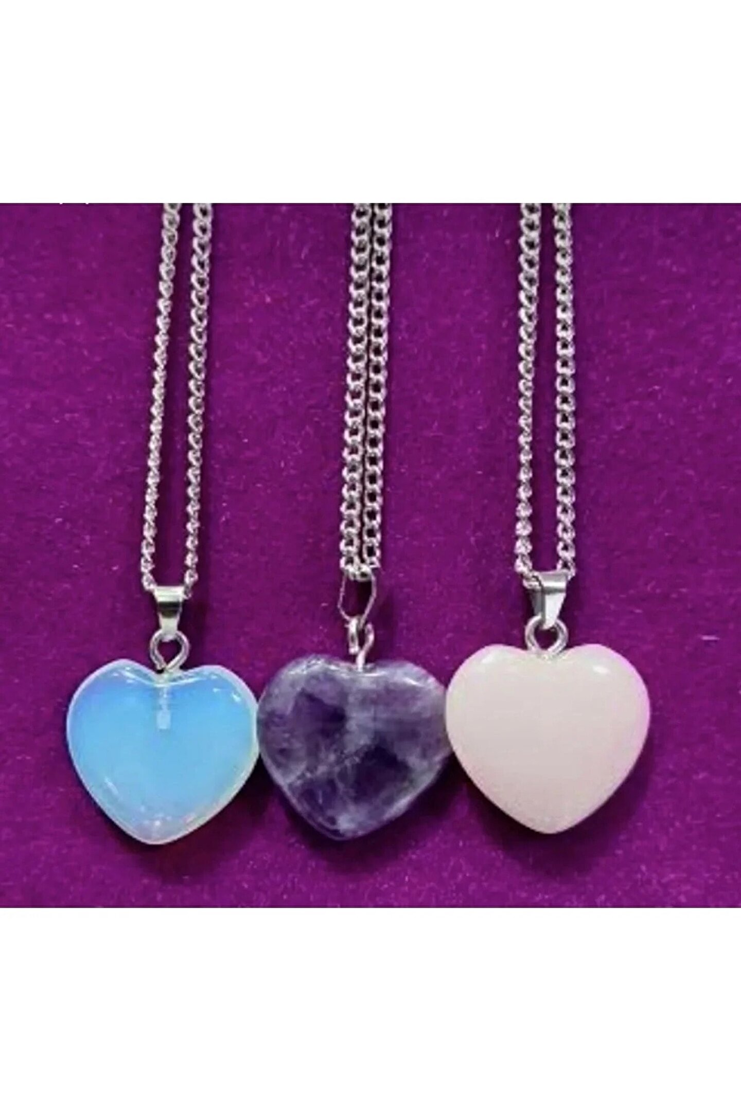 NATURALİM Kalp Doğal Taş Ametist-pembe Kuvars-Ay Taşı 3lü Kolye Kombin Set