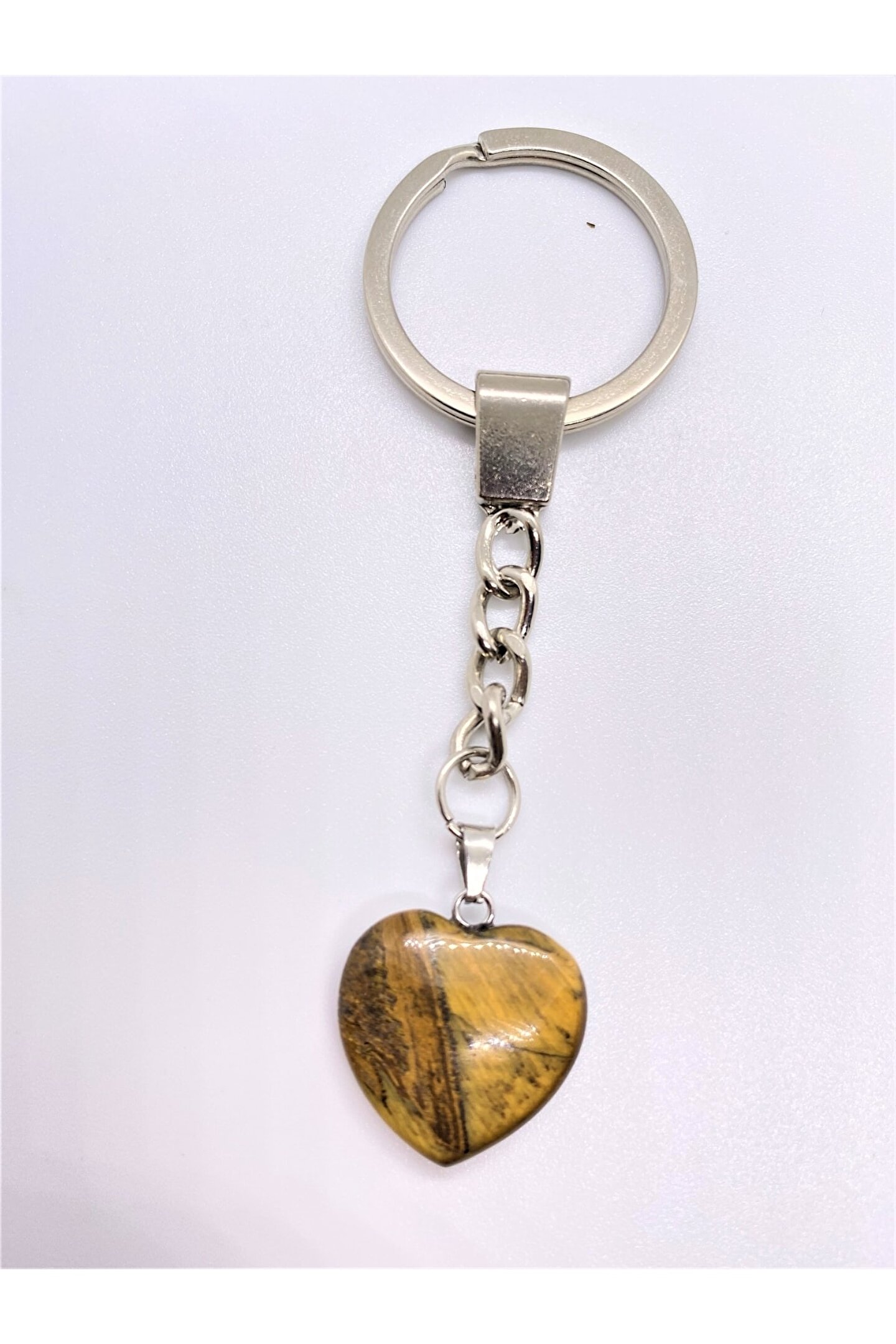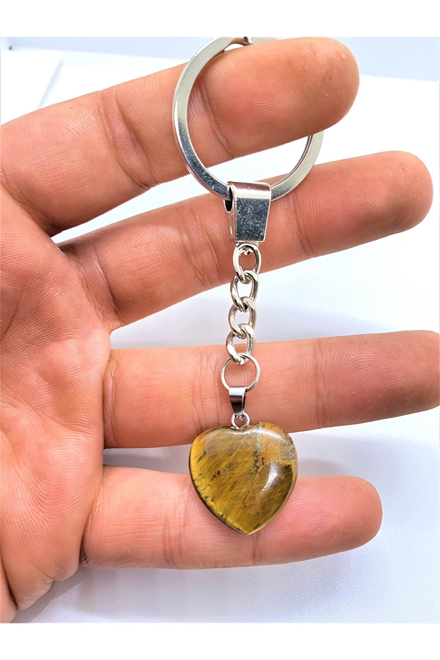 NATURALİM Kaplan Gözü Taşı Doğal Taş Kalp Anahtarlık Hediyelik
