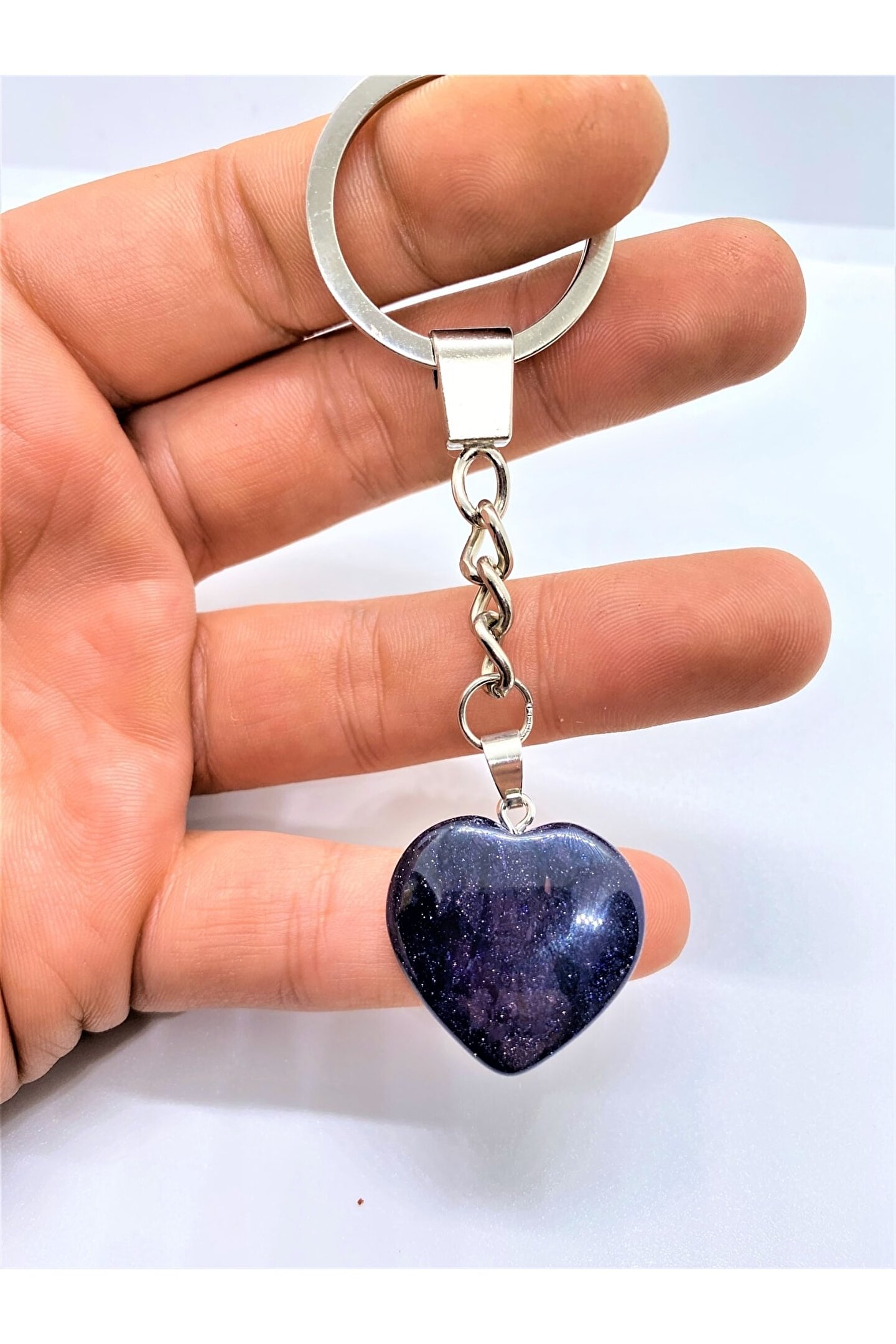 NATURALİM Lacivert Yıldız Taşı Doğal Taş Kalp Anahtarlık Hediyelik