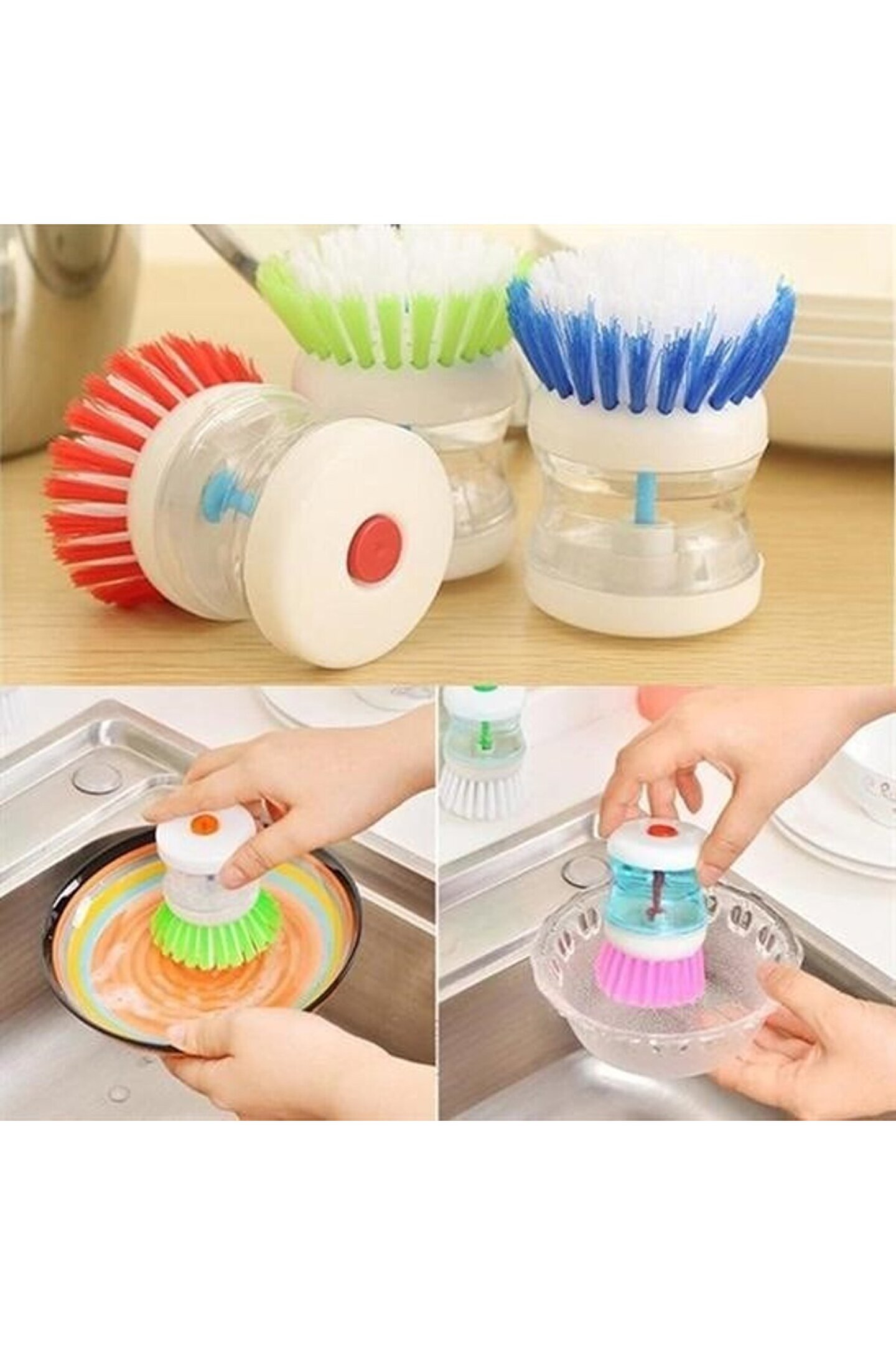 Deterjan Hazneli Pratik Kolay Bulaşık Yıkama Fırçası Bulaşık Süngeri Pratik bulaşık yıkama fırçası bulaşık süngerini kullanmak için sıvı deterjan haznesine bulaşık deterjanı koyun üstteki düğmeye her bastığınızda bir miktar deterejan fırçanın kıllarının dibinden fırçaya akar! Deterjan hazneli bulaşık fırçası ile Yanmış, dibi tutmuş tencere ve tavaların çok kolay bir şekilde temizlenmesine yardımcı olur! Deterjanlı bulaşık yıkama aparatı ile dakikalarca bulaşık yıkamak için mutfakta zaman harcamayacaksınız! Ürün Özellikleri: -Bulaşık yıkama fırçası, zor ve yanmış yağları söker -Pratik bulaşık yıkama sünger aparat, tencere ve tavaları çizmez -Deterjan hazneli bulaşık fırçasının kullanımı pratik ve kolaydır -Üzerinde yer alan tuşa basıldığı zaman içerisindeki detarjanın otomatik olarak akar ve pratik temizleme imkanı sunar -Boşta dururken içerisinde yer alan mekanizma sayesinde içerisindeki detarjanı akıtmamaktadır -Sert fırça yapısına sahiptir Paket İçeriği: -1 Adet Deterjan Hazneli Bulaşık Fırçası Ürün Materyali -Plastik Ürün Rengi -Asorti Ürün ölçüleri -5,5-8,5-5,5 Ürün Paket Ölçüleri -5,5-8,5-5,5 Ürün ağırlığı 40 Ürün Desi -0,09