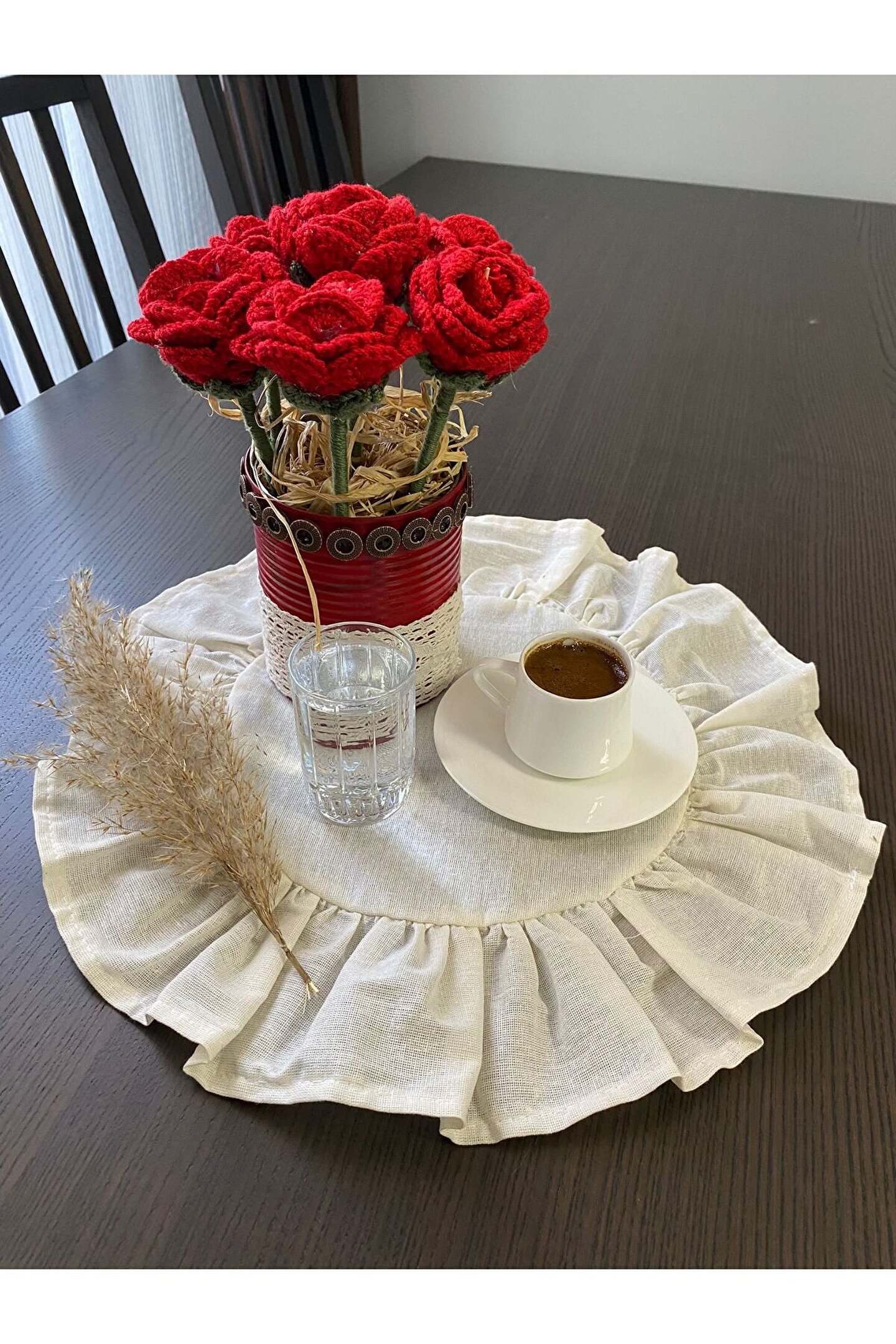 - Pamuklu keten kumaştan üretilmiş olup, doğal dokusuyla sofralarınıza şıklık katıyor.; - Türkiye'de üretilmiş olması, yerel üretim kalitesini ve sürdürülebilirliği destekliyor.; - 30 derecede makinede yıkama imkanı sunarak pratik kullanım sağlıyor; kurutma makinesinde kurutmaya karşı dikkat edilmeli, çekme riskine karşı önlem alınmalıdır.; - 40x40 cm boyutlarındaki yuvarlak tasarımı ile modern ve estetik bir görünüm sunuyor.; - 6 parça sayısı sayesinde farklı sayıda servis ihtiyaçlarına uyum sağlayabiliyor.;