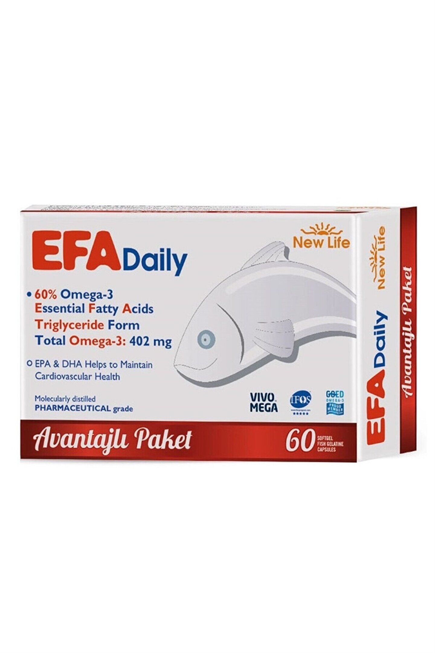 New Life EFA Daily 60 Kapsül Önemli Not: Herhangi bir hastalığın önlenmesi, tedavi edilmesi veya iyileştirilmesi amacıyla kullanılmamalıdır.; Ürünün etkileri kişiden kişiye değişebilir ve herhangi bir sağlık iddiası bilimsel olarak kanıtlanmamıştır.; Sağlıkla ilgili herhangi bir endişeniz varsa, lütfen bir sağlık profesyoneline danışın.