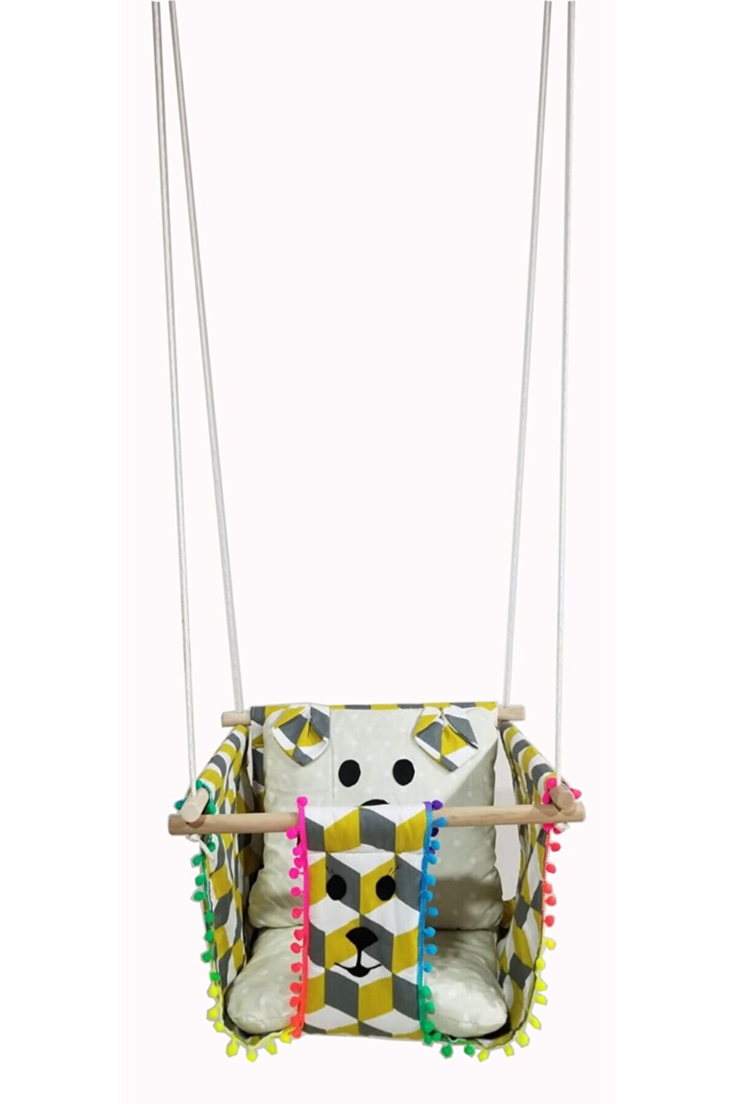 Emniyet Kemerli Bebek Salıncak Ağaç Salıncak Noktalı Bej