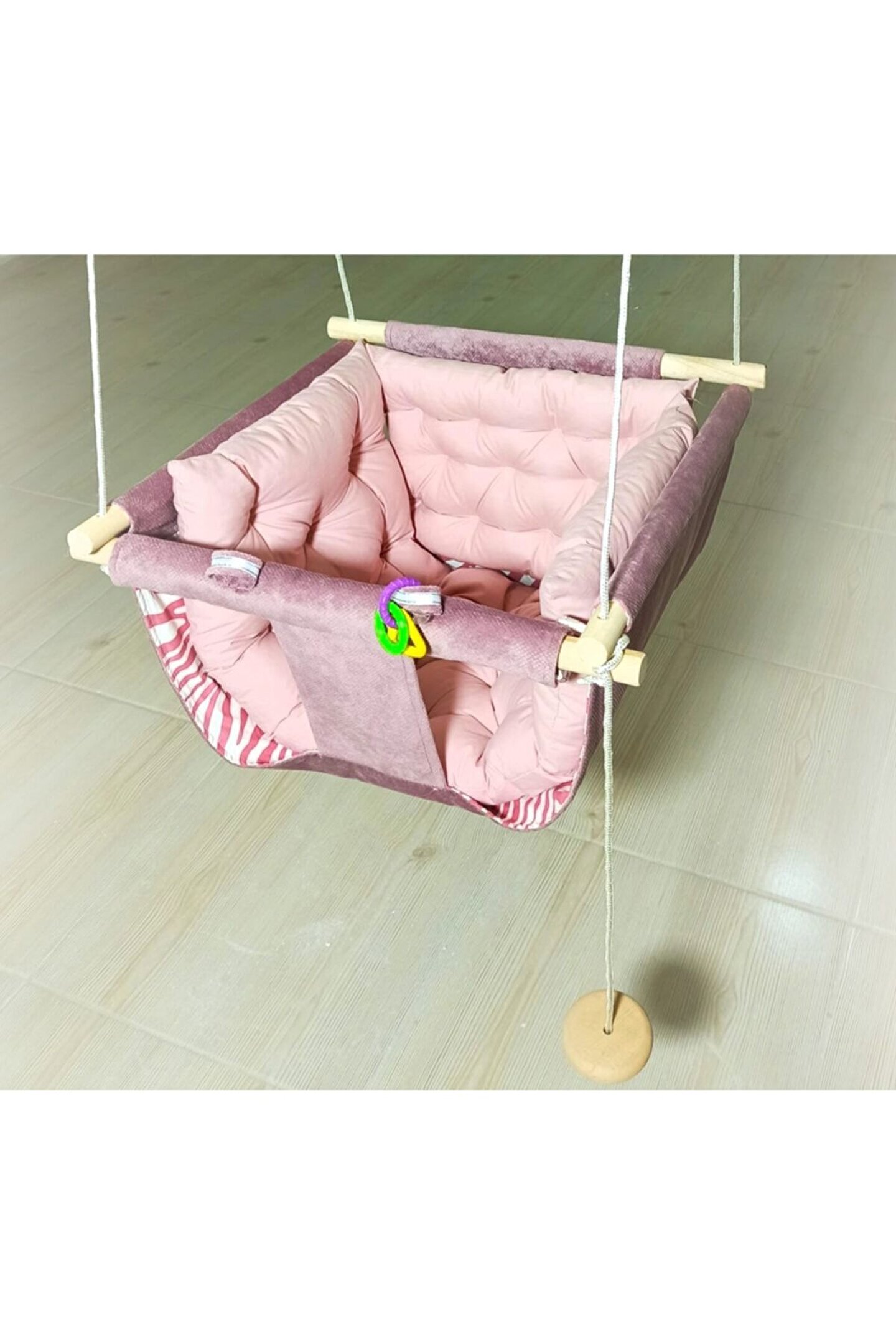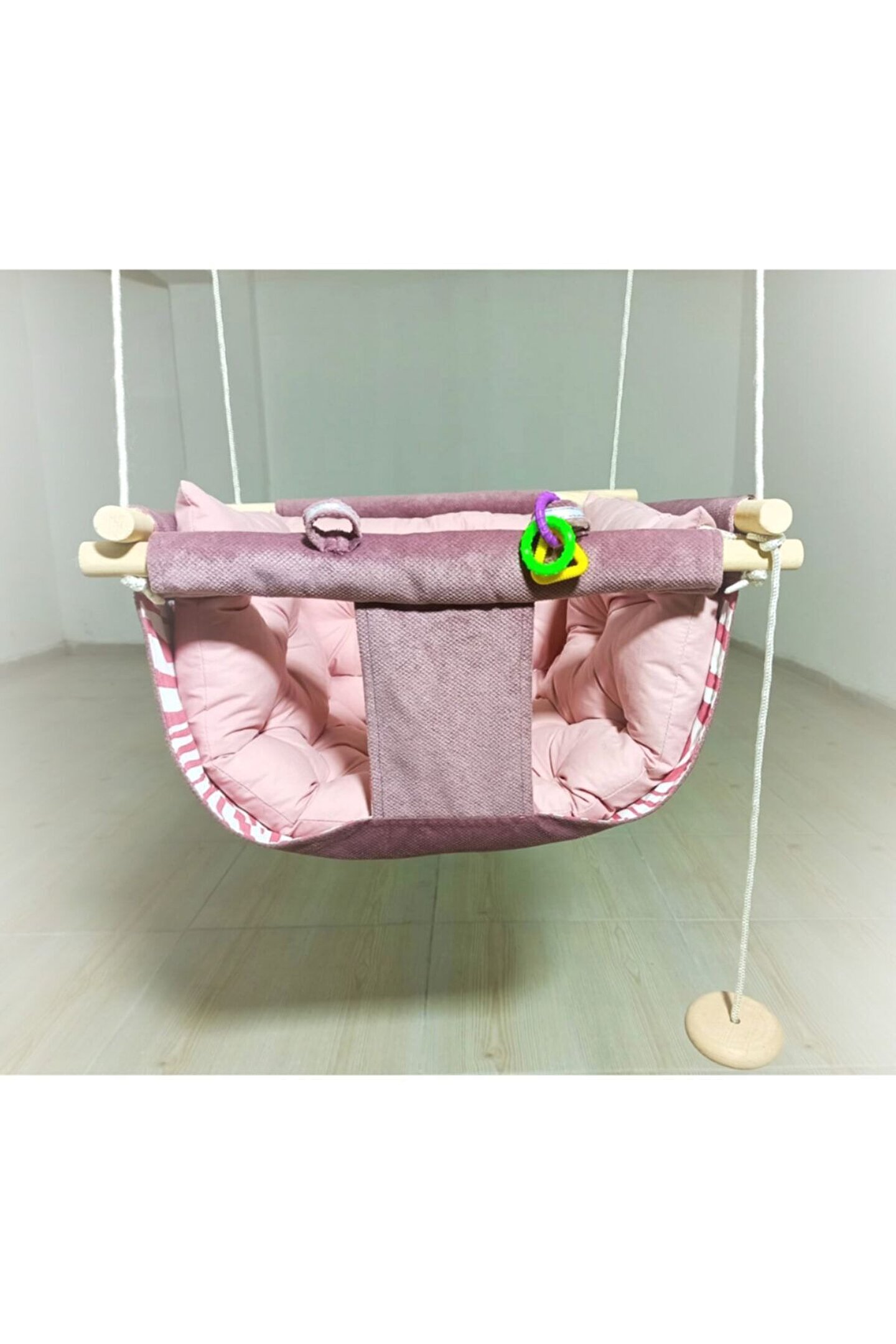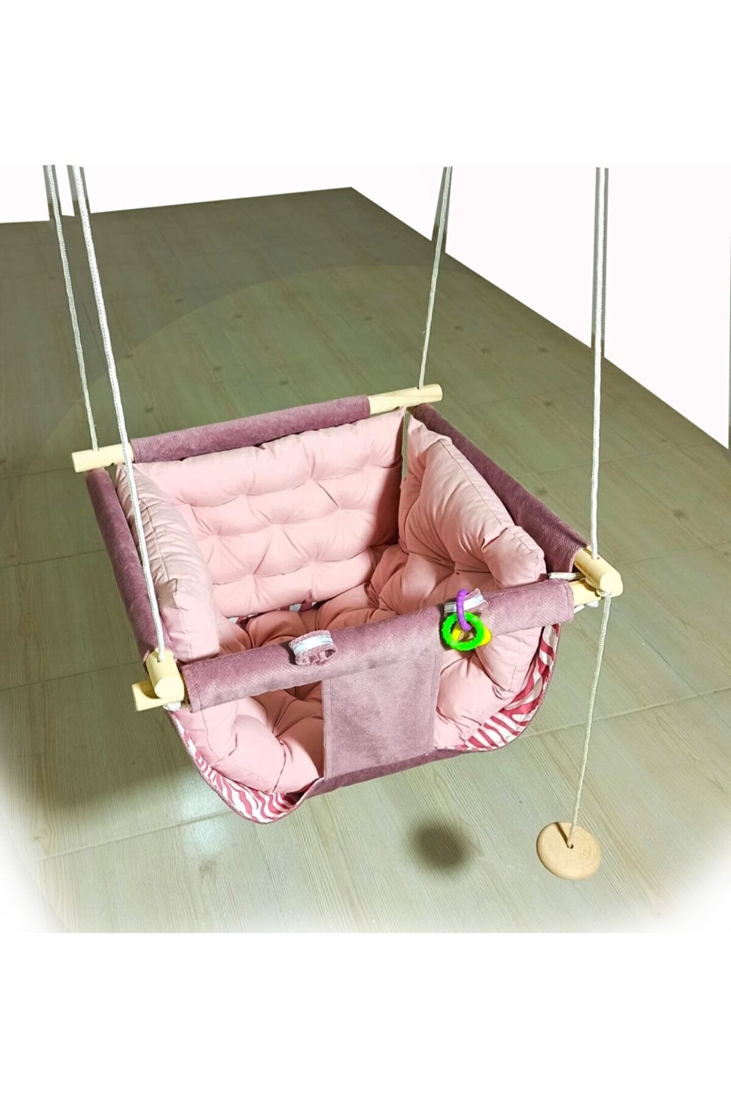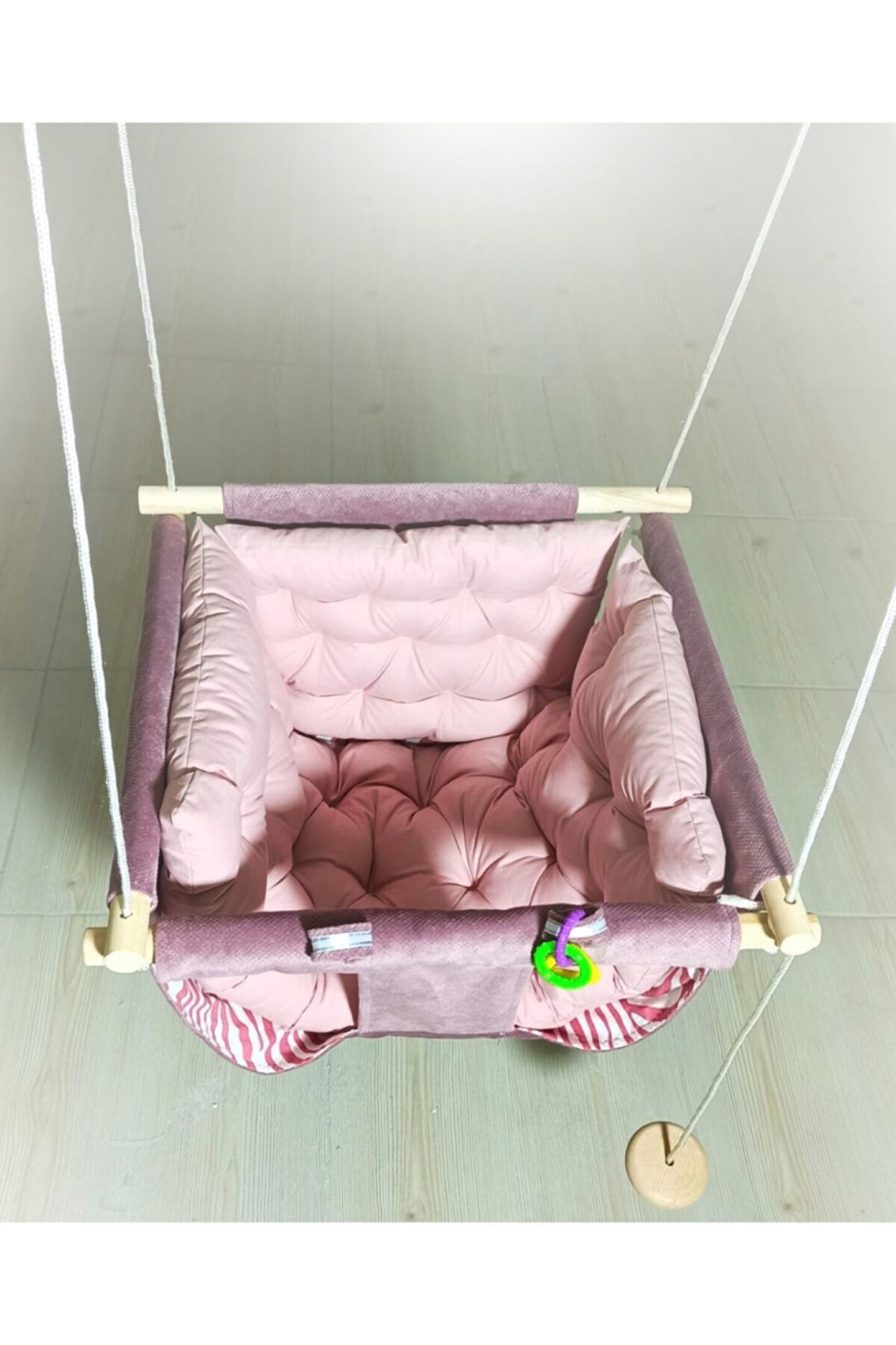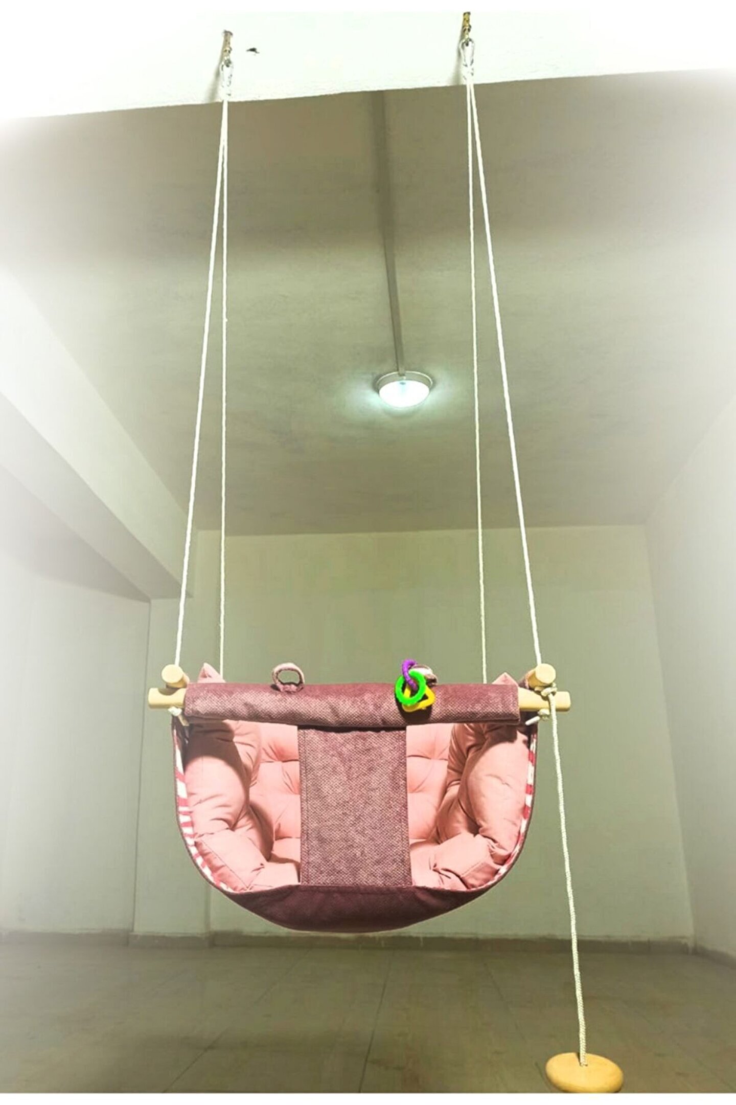 NİSABABYTASARIM ahşap yastıklı minderli bebek salıncağı -kumaş kısımlar %100 pamuk duck kumaşıdır. ; -maksimum 50 kg taşıma kapasitesine sahiptir. ; -dogal gürgen ağacından üretilmiştir. ; -kumaş yıkanabilir. ; -aşınmalara dayanıklı gemici halatı kullanılmıştır. ; -ergonomik tasarım ve kolay kurulum. ; -ister evde, ister bahçede, isterseniz piknikte rahatlıkla kullanabilirsiniz. ; -Arabanızda ve eviniz de yer kaplamaz. ; -Ürünle beraber göderdiğimiz yastık ve minder bebeğinizin rahat oturmasını ve güzel vakit geçirmesini sağlar. ; Paket içeriği: Diş kaşıyıcı - 1 adet %100 pamuk bebek salıncak - 1 adet karabina kanca - 2 adet çelik dübel - 1 adet yastık - 1 adet minder Kurulumu: Paketten çıkan çelik dübelin ölçüsünde beton tavanı çapı ø10'luk uçlu matkapla bir delik açın. ; Çelik dübeli tavana delinen deliğe çakın ve çelik dübelin altında bulunan somunu sonuna kadar sıkın. ; Sağlamlığını test ettikten sonra kancayı çelik dübele asın. ; Ölçüler: -boy :42 cm -en :42 cm -yükseklik : 27 cm -halat boyu 4 * 2,5 metre TÜRK MALI NİSABABYTASARIM BEBEK SALINCAK...;