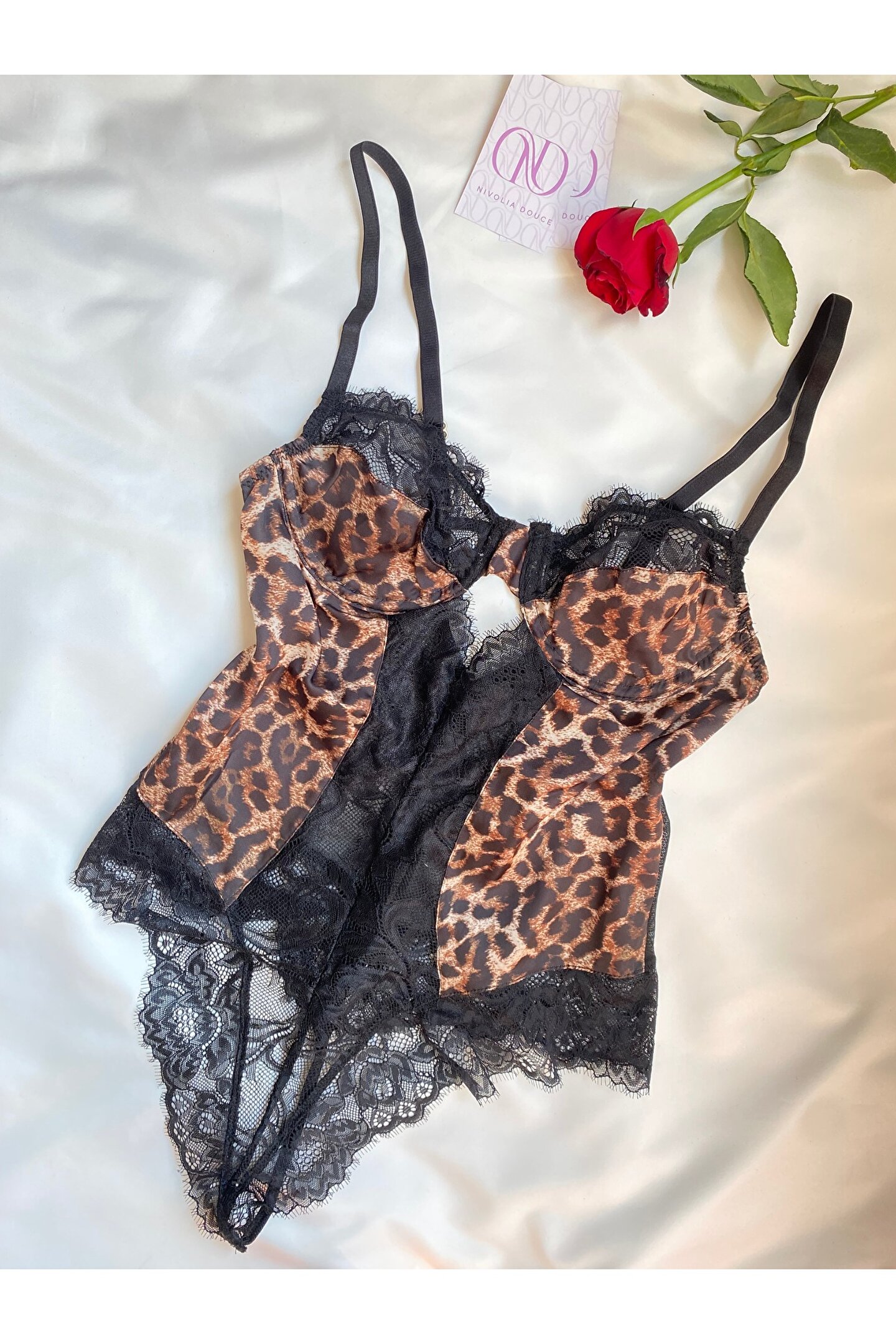 Nivolia Douce Leopar Desen Dantelli Balenli Bodysuit