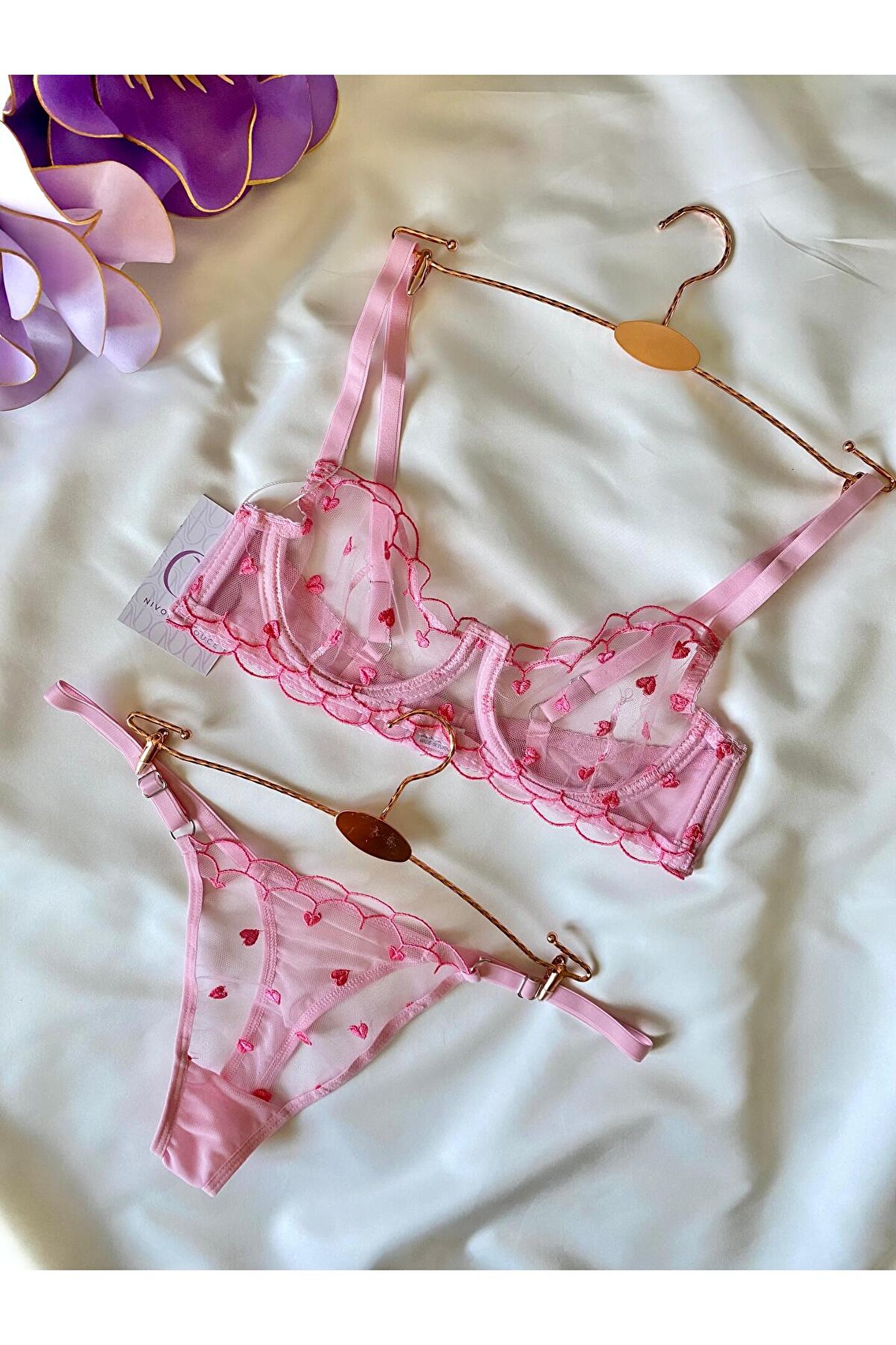 Nivolia Douce Pembe Kalp Desenli İç Çamaşır Takımı