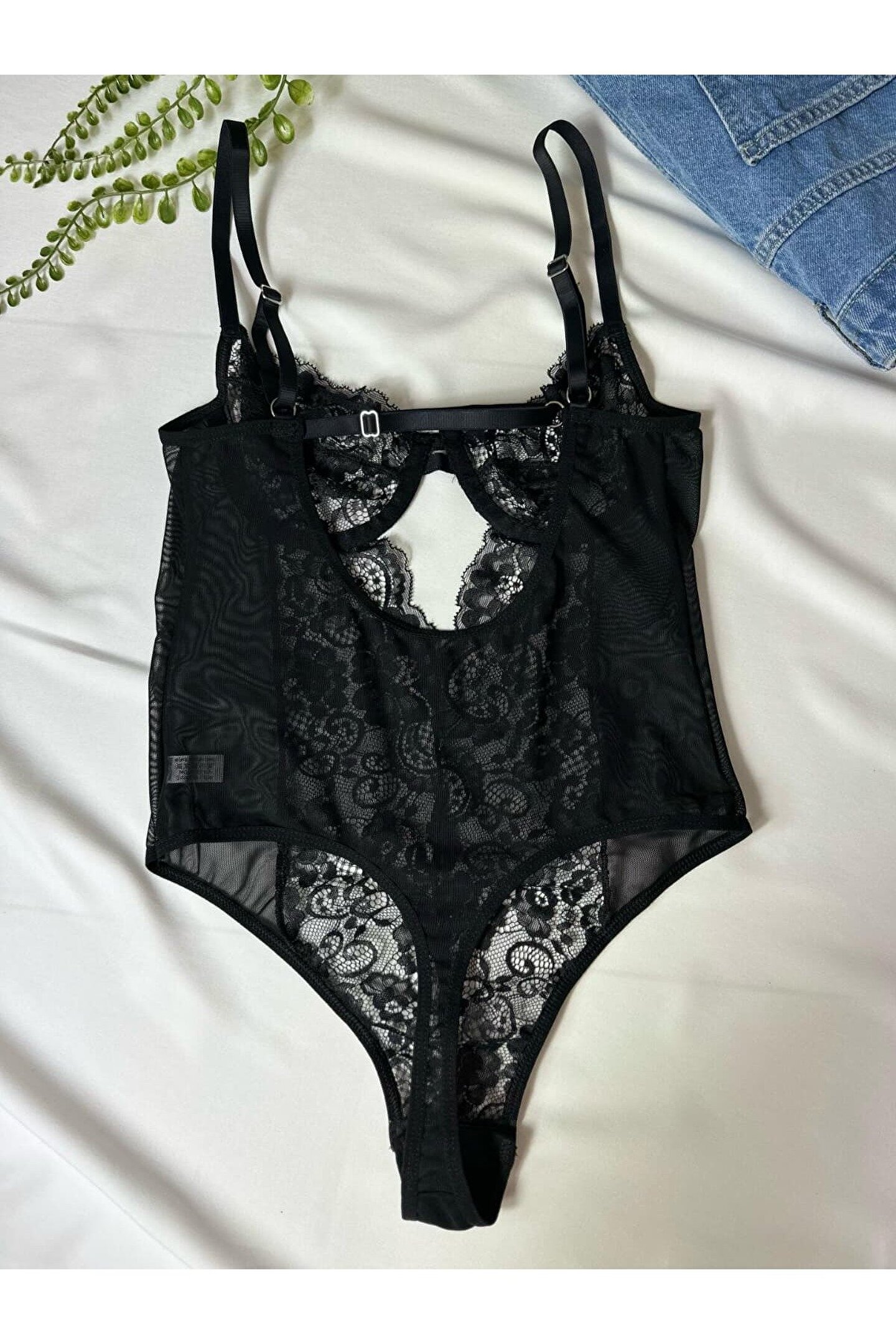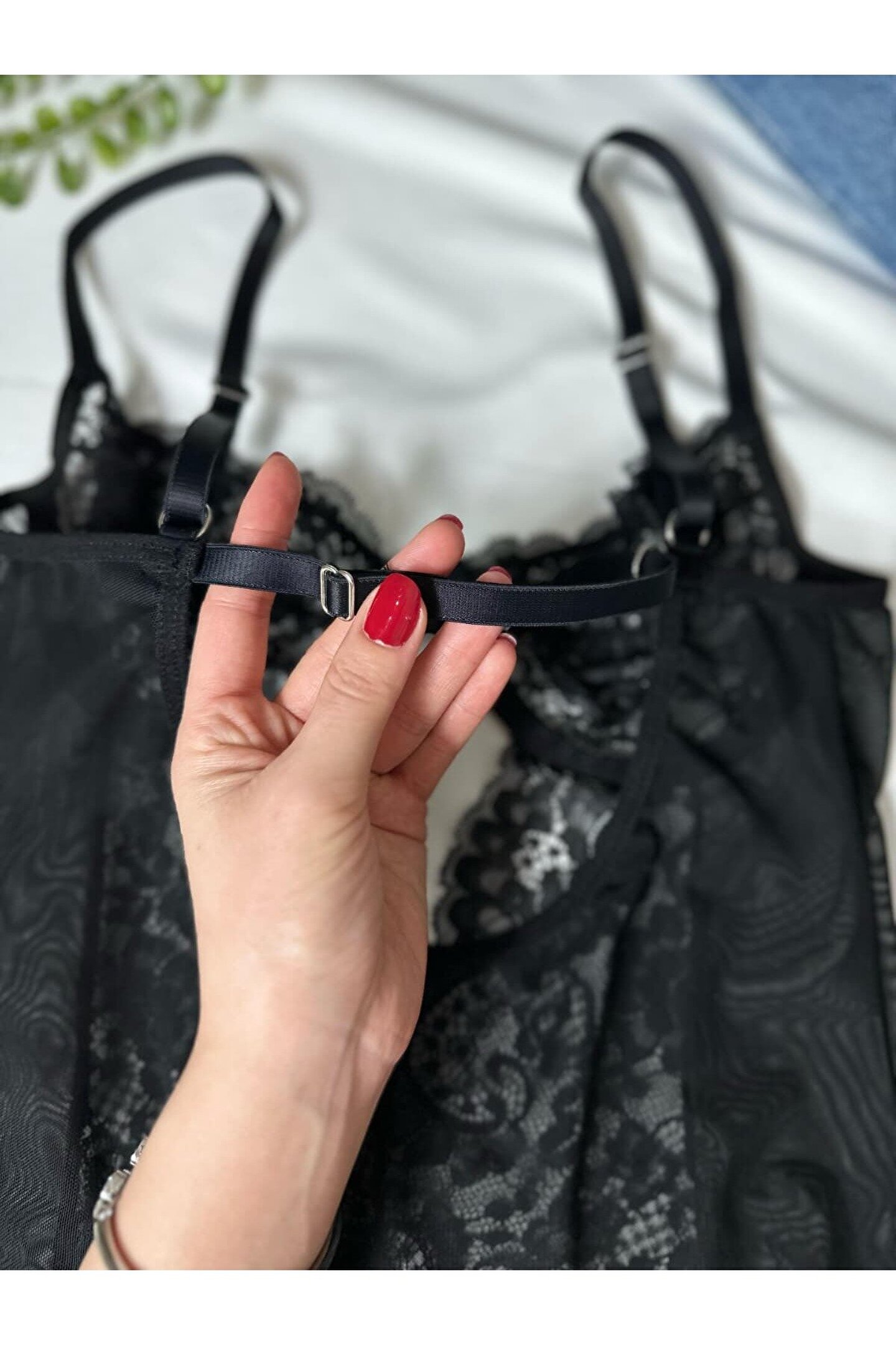 Nivolia Douce Siyah Dantelli Balenli Balkonet Bodysuit
