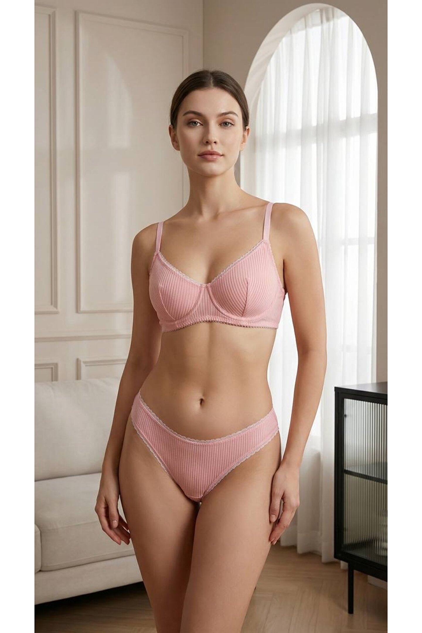 Kaşkorse dokusuyla üretilen Soft Touch sütyen takımı, yumuşak ve nefes alabilen yapısıyla gün boyu rahatlık sunar.; ; Balenli wire bra sütyeni, göğüsleri doğal bir şekilde desteklerken toparlayıcı etkisiyle estetik bir form kazandırır.; ; Alt parçası, vücuda uyumlu kesimi sayesinde konforu ön planda tutarken şık bir görünüm sağlar.; ; Düz ve sade tasarımı, farklı kıyafetlerle kolayca kombinlenmesine olanak tanır.; ; 2’li paket içeriğiyle avantajlı bir kullanım sunan bu takım, günlük şıklık ve konforu bir arada arayanlar için ideal bir seçimdir.; ; Normal bel kesimi hareket özgürlüğünü destekler.; ; Kalıp: Normal bel brazilian ; Özellik: Balenli, toparlayıcı ; Paket İçeriği: 2 parça ;
