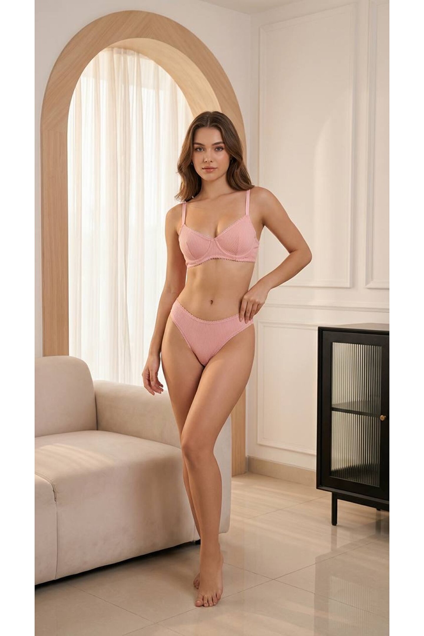 Kaşkorse dokusuyla üretilen Soft Touch sütyen takımı, yumuşak ve nefes alabilen yapısıyla gün boyu rahatlık sunar.; ; Balenli wire bra sütyeni, göğüsleri doğal bir şekilde desteklerken toparlayıcı etkisiyle estetik bir form kazandırır.; ; Alt parçası, vücuda uyumlu kesimi sayesinde konforu ön planda tutarken şık bir görünüm sağlar.; ; Düz ve sade tasarımı, farklı kıyafetlerle kolayca kombinlenmesine olanak tanır.; ; 2’li paket içeriğiyle avantajlı bir kullanım sunan bu takım, günlük şıklık ve konforu bir arada arayanlar için ideal bir seçimdir.; ; Normal bel kesimi hareket özgürlüğünü destekler.; ; Kalıp: Normal bel brazilian ; Özellik: Balenli, toparlayıcı ; Paket İçeriği: 2 parça ;