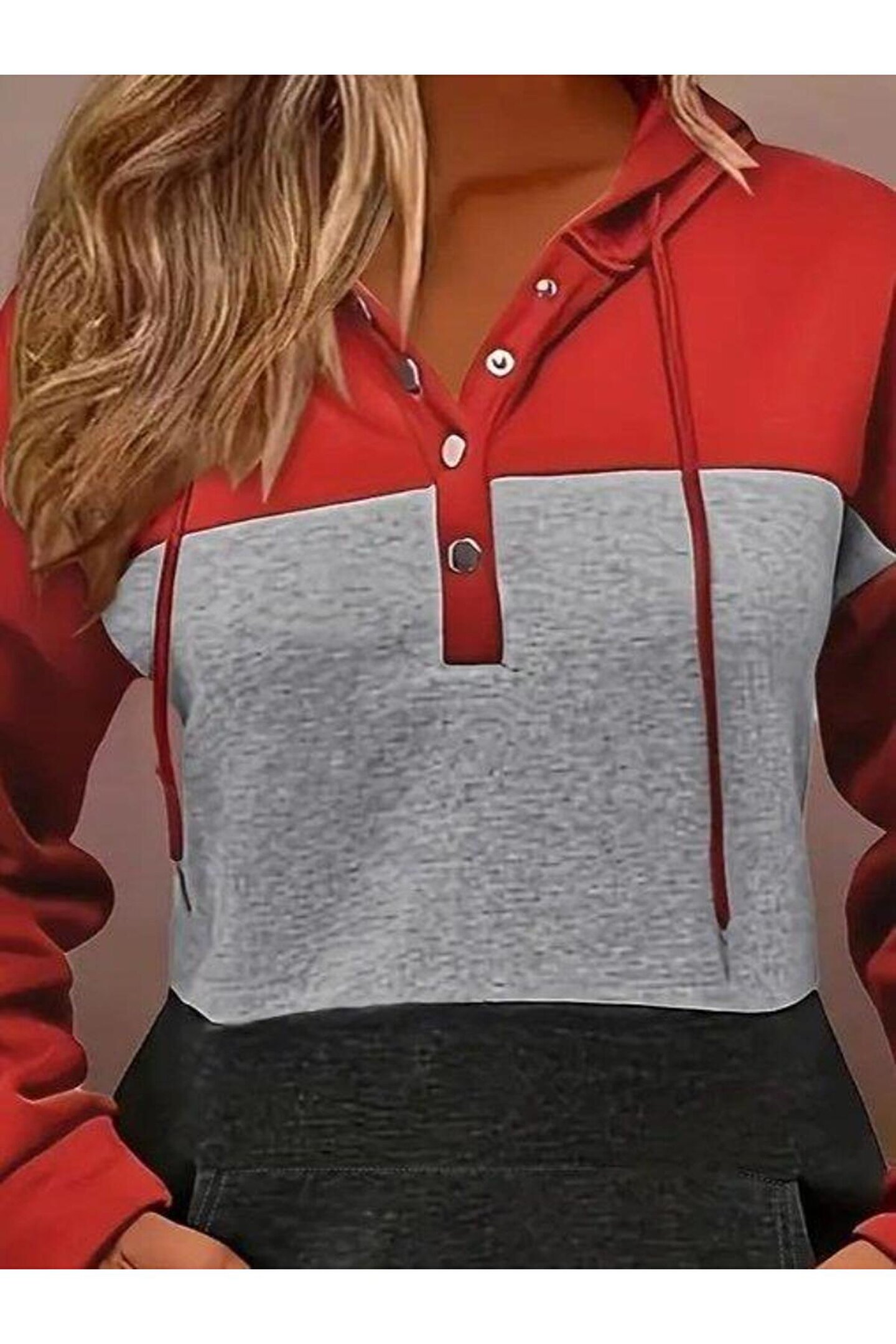 Nnstartshopping Kadın Uzun Kollu Kapşonlu çok Renkli Iki Iplik Bluz