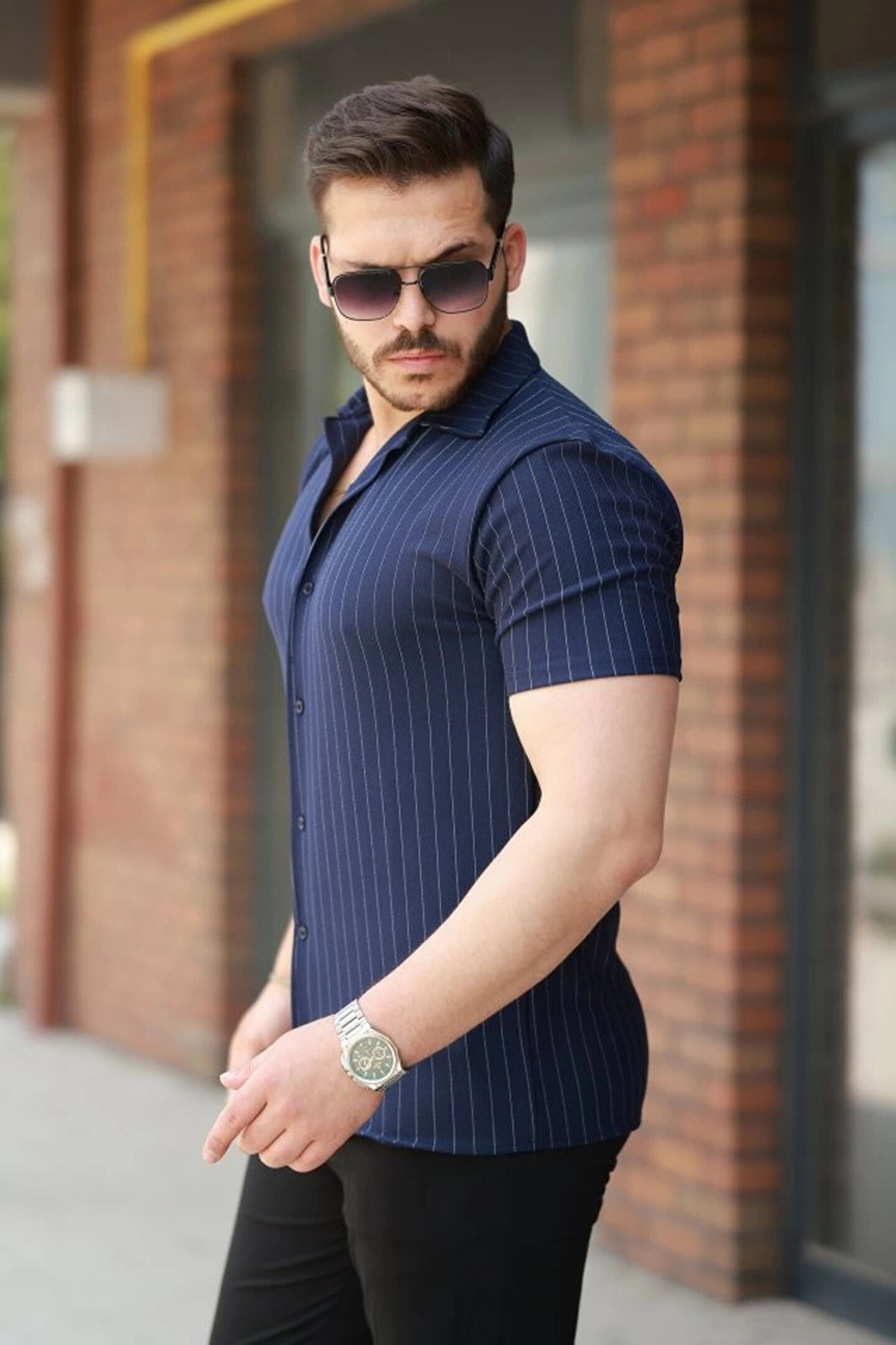 NOİR & GOLD Erkek Kısa Kollu çizgili Gömlek