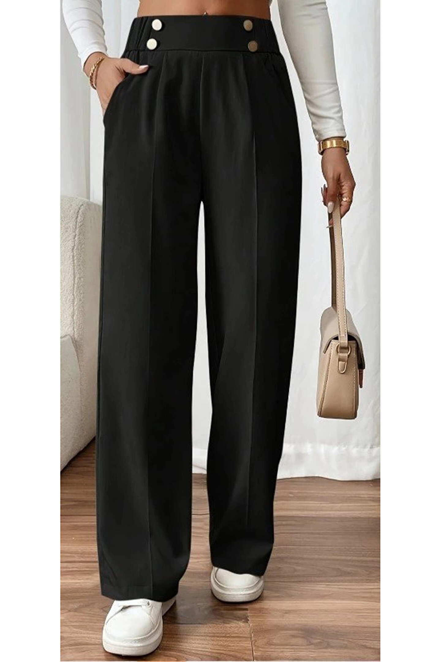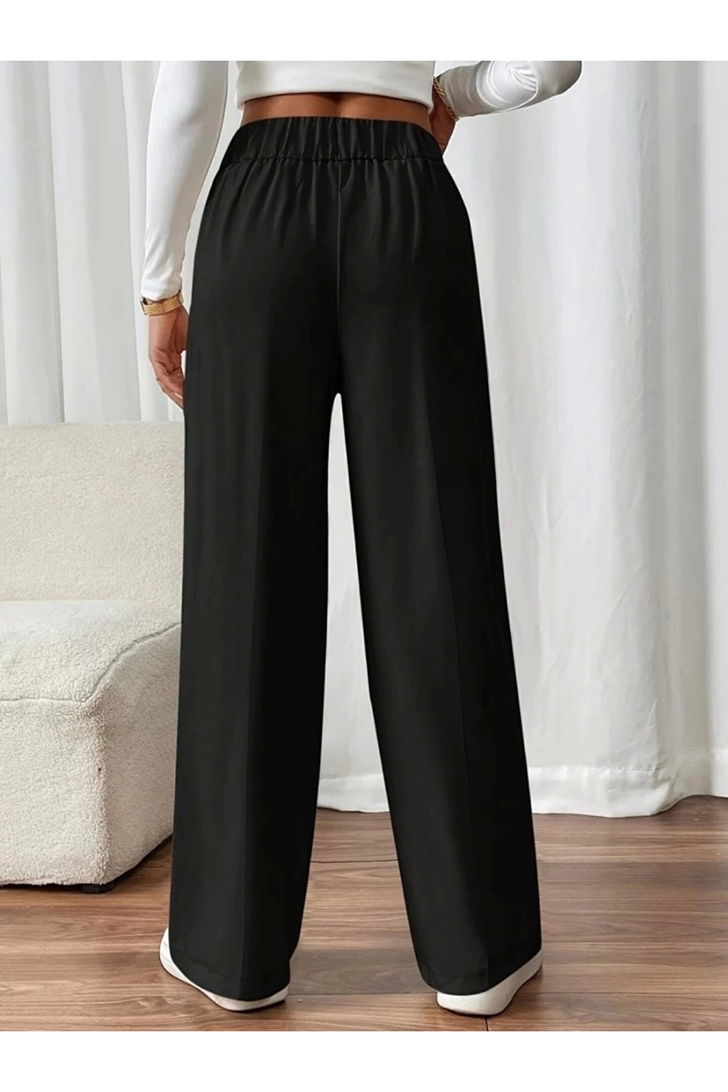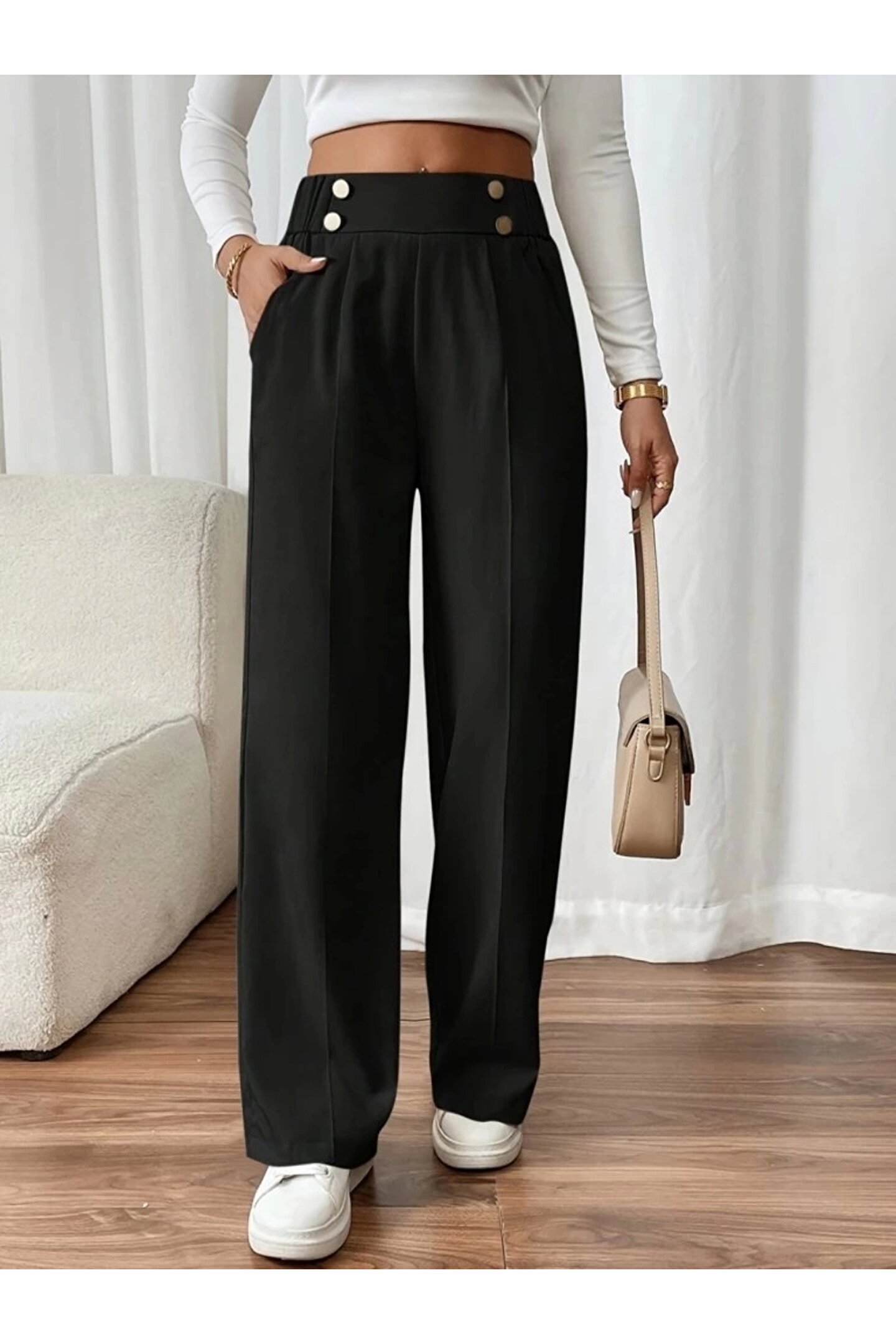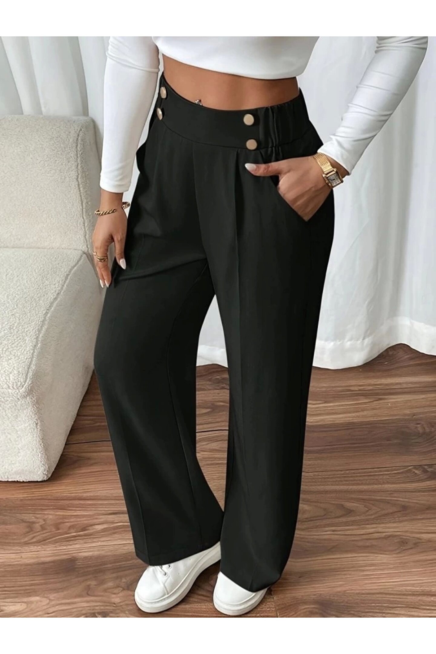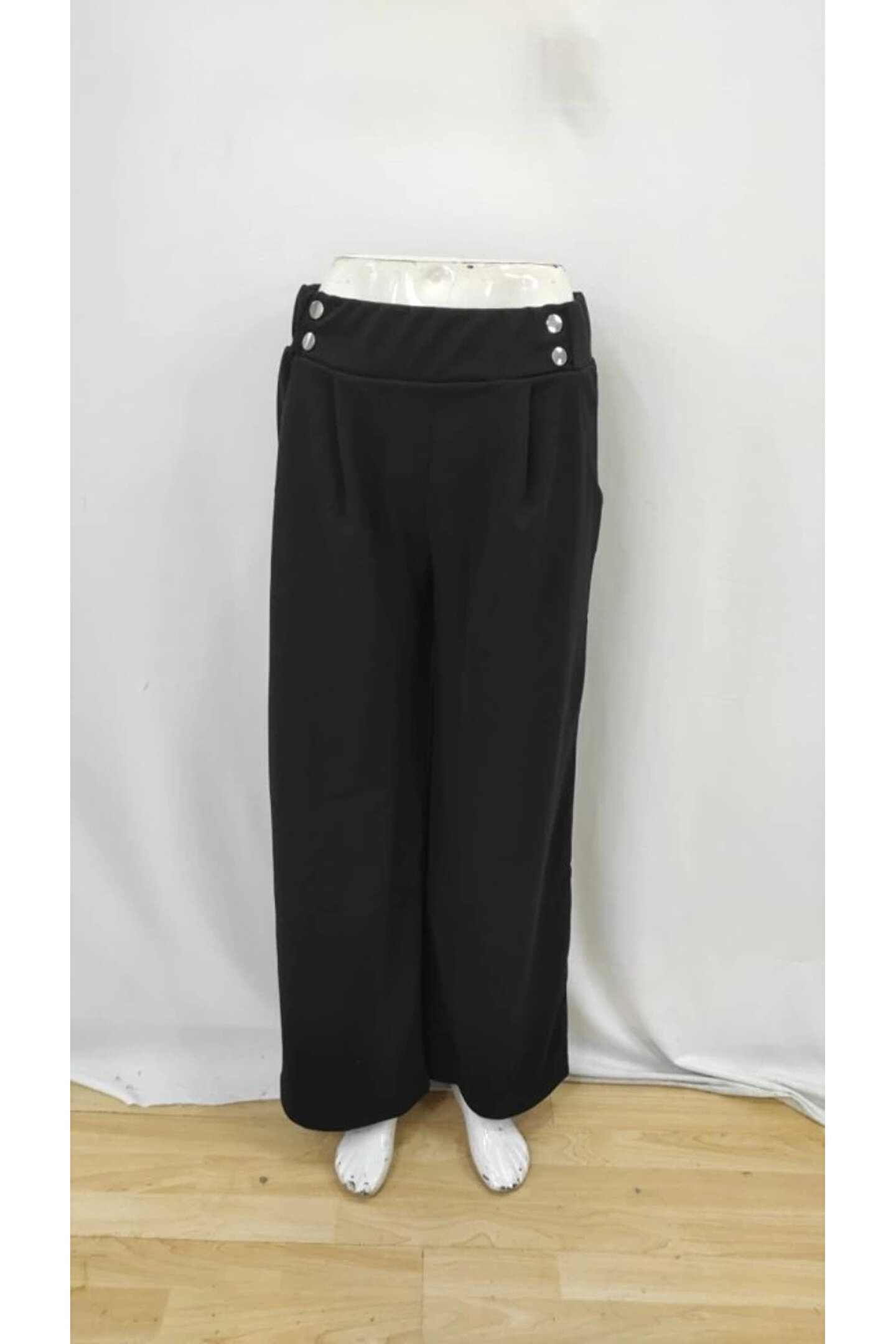 NOİR & GOLD Kadın Beli Lastikli Düğmeli Ithal Krep Pantolon