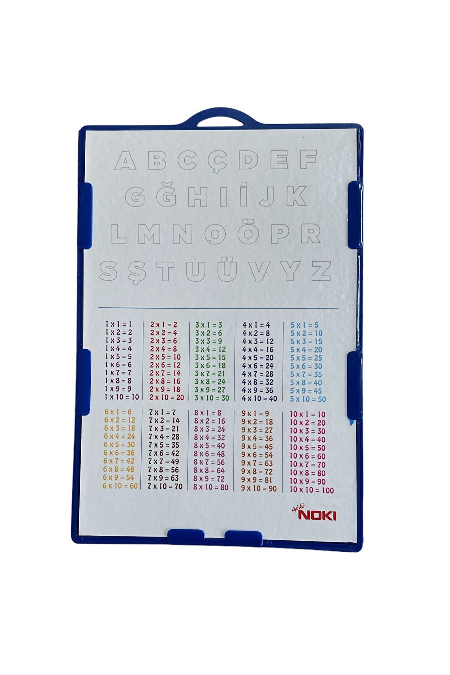 NOKİ ÇİFT TARAFLI YAZI TAHTASI ARKA YÜZÜNDE ÇARPIM TABLOSU VE BOŞ HALDE BULUNAN HARFLER BULUNMAKTADIR.; ÇOCUKLARIN HEM EĞLENİP HEMDE ÖĞRENECEĞİ ŞEKİLDE TASARLANMIŞ ÇİFT TARAFLI YAZI TAHTASI PAKET İÇERİĞİ 1 ADET ÇİFT TARAFLI YAZI TAHTASI 1 ADET KEÇELİ KALEM-SİLGİLİ ÜRÜN ÖLÇÜLERİ EN: 17 CM BOY:26 CM ÜRÜNÜN 4 FARKLI RENK SEÇENEĞİ BULUNMAKTADIR RENK SEÇİMİNİZİ SİPARİŞ SORULARI KISMINDAN FİRMAMIZA BİLDİRİRSENİZ TERCİH ETTİĞİNİZ MODEL VE RENGİ TARAFINIZA GÖNDERİM SAĞLARIZ.; RENK BELİRTİLMEYEN SİPARİŞLERDE STOK DURUMUNA GÖRE HERHANGİ BİR RENK GÖNDERİMİ SAĞLANACAKTIR