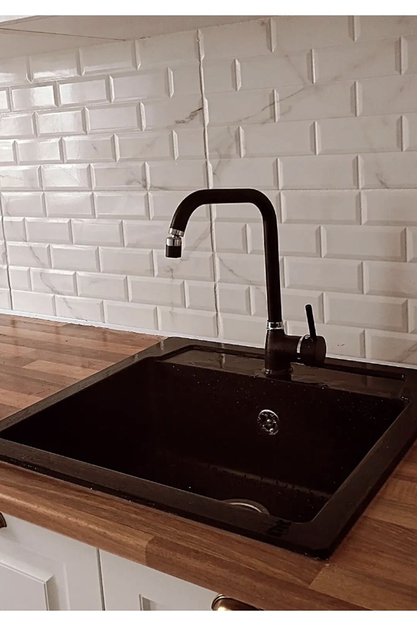 Granit malzemesi sayesinde uzun ömürlü ve dayanıklı kullanım sunar; Köşeli tasarımı ile modern ve şık bir görünüm sağlar, mutfak dekorasyonunuza estetik bir dokunuş katar;