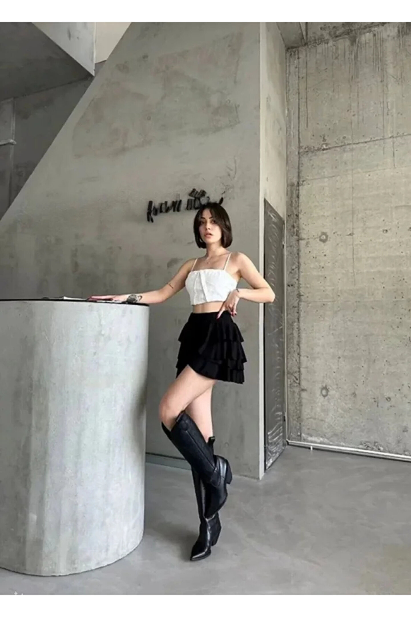 Mykonos Basic Etek - Siyah Modelin Ölçüleri: Boy:165, Kg:55, Göğüs:90, Bel:72, Kalça: 100 Modelin üzerindeki ürün M/38 bedendir