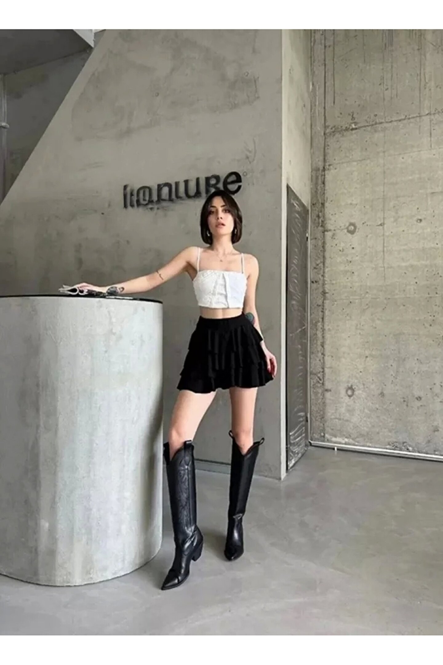Mykonos Basic Etek - Siyah Modelin Ölçüleri: Boy:165, Kg:55, Göğüs:90, Bel:72, Kalça: 100 Modelin üzerindeki ürün M/38 bedendir