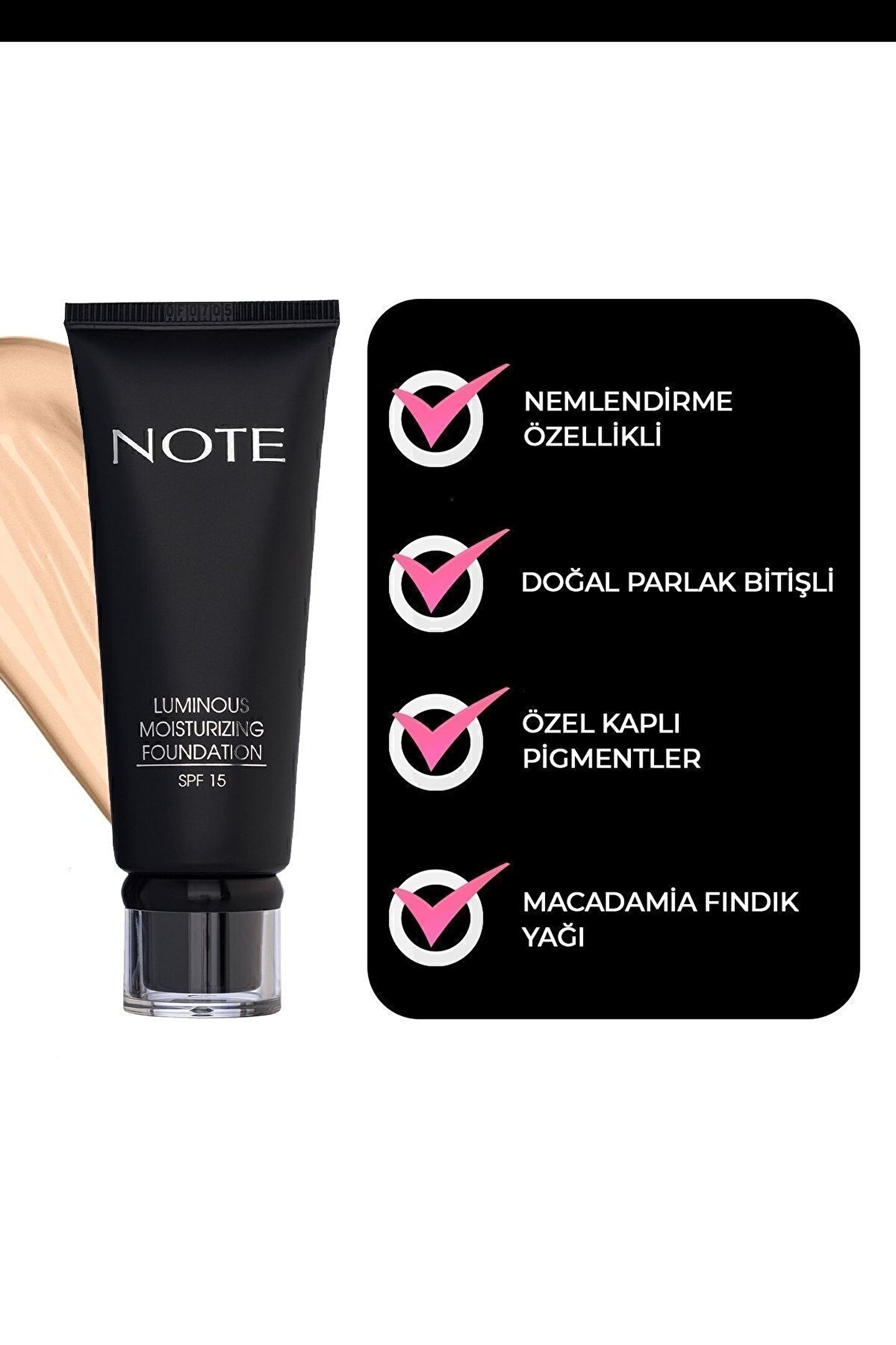 Antioksidan etkili tatlı badem yağı ve cilt için faydalı asitler içeren macadamia yağı ile zenginleştirilen formülü sayesinde yoğun nemlendirme sağlar.; Kuru ve kurumaya yatkın cilt tipleri için ideal olan bu ürün, gün boyu kalıcılığını korur.; Cilt tonunu eşitler, doğal ve sağlıklı bir görünüm sunarken yüksek kapatıcılığıyla cilt kusurlarını gizler.; İpeksi dokusu sayesinde kolayca uygulanır ve çabuk kuruyarak giysilere bulaşmaz.; SPF 15 ile güneşin zararlı UVA ve UVB ışınlarına karşı koruma sağlar.; Açıldıktan sonra 12 ay içinde kullanılması önerilir.; En güncel ürün bilgileri için lütfen satın aldığınız ürünün ambalajını kontrol ediniz.