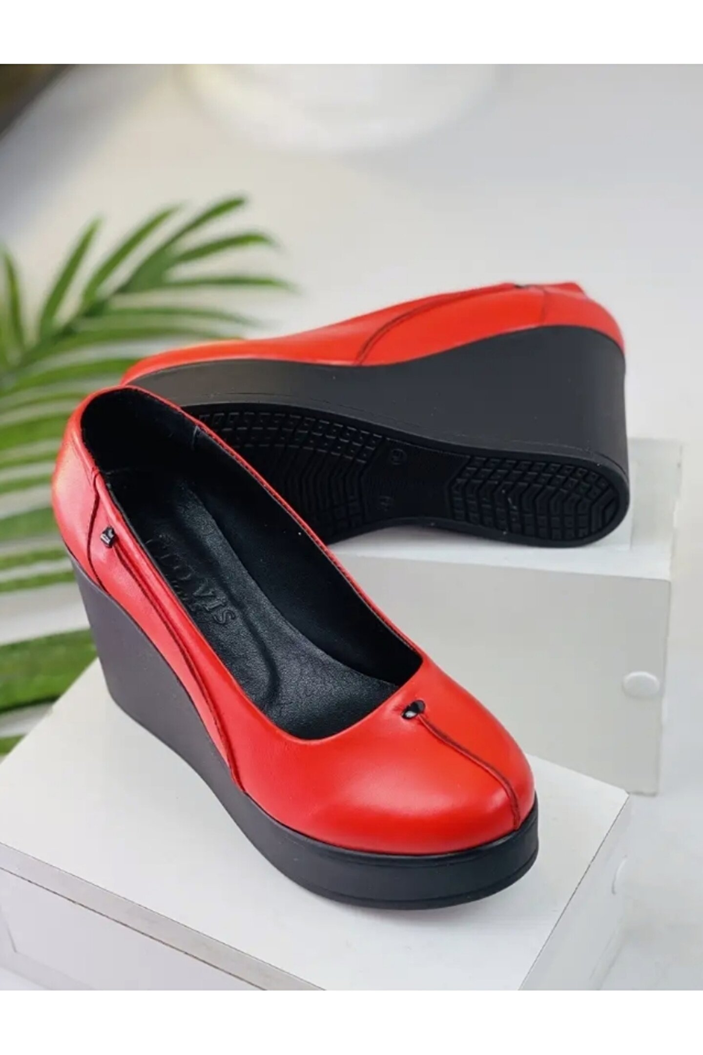 İÇİ DIŞI %100 HAKİKİ DERİ SATEN DESENLİ PEDLİ İÇ TABAN DOLGU TOPUK AYAKKABI -*DİKKAT*- BİR NUMARA BÜYÜK TAVSİYE EDİLİYOR