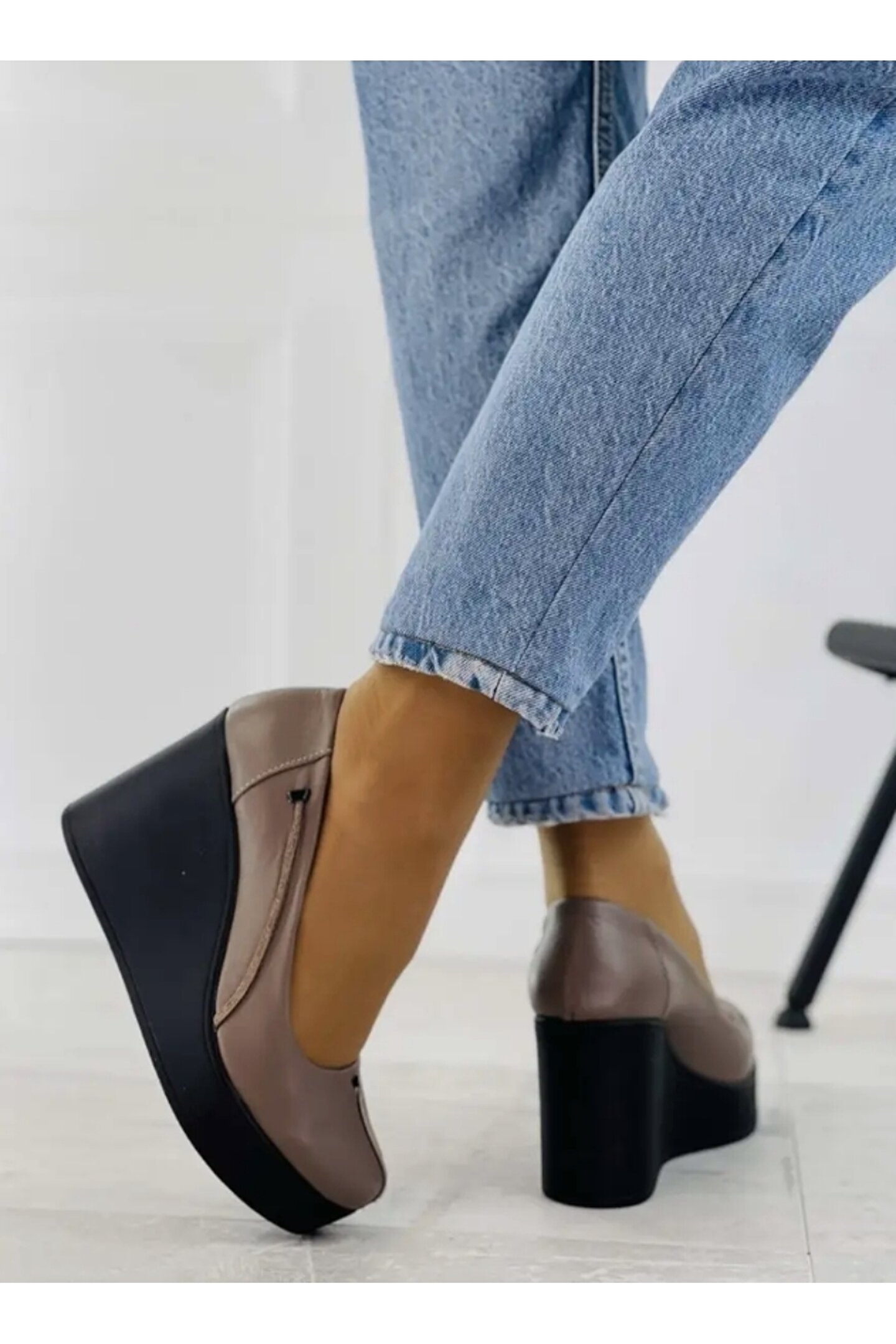 .İÇİ DIŞI %100 HAKİKİ DERİ SATEN DESENLİ PEDLİ İÇ TABAN DOLGU TOPUK AYAKKABI -*DİKKAT*- BİR NUMARA BÜYÜK TAVSİYE EDİLİYOR