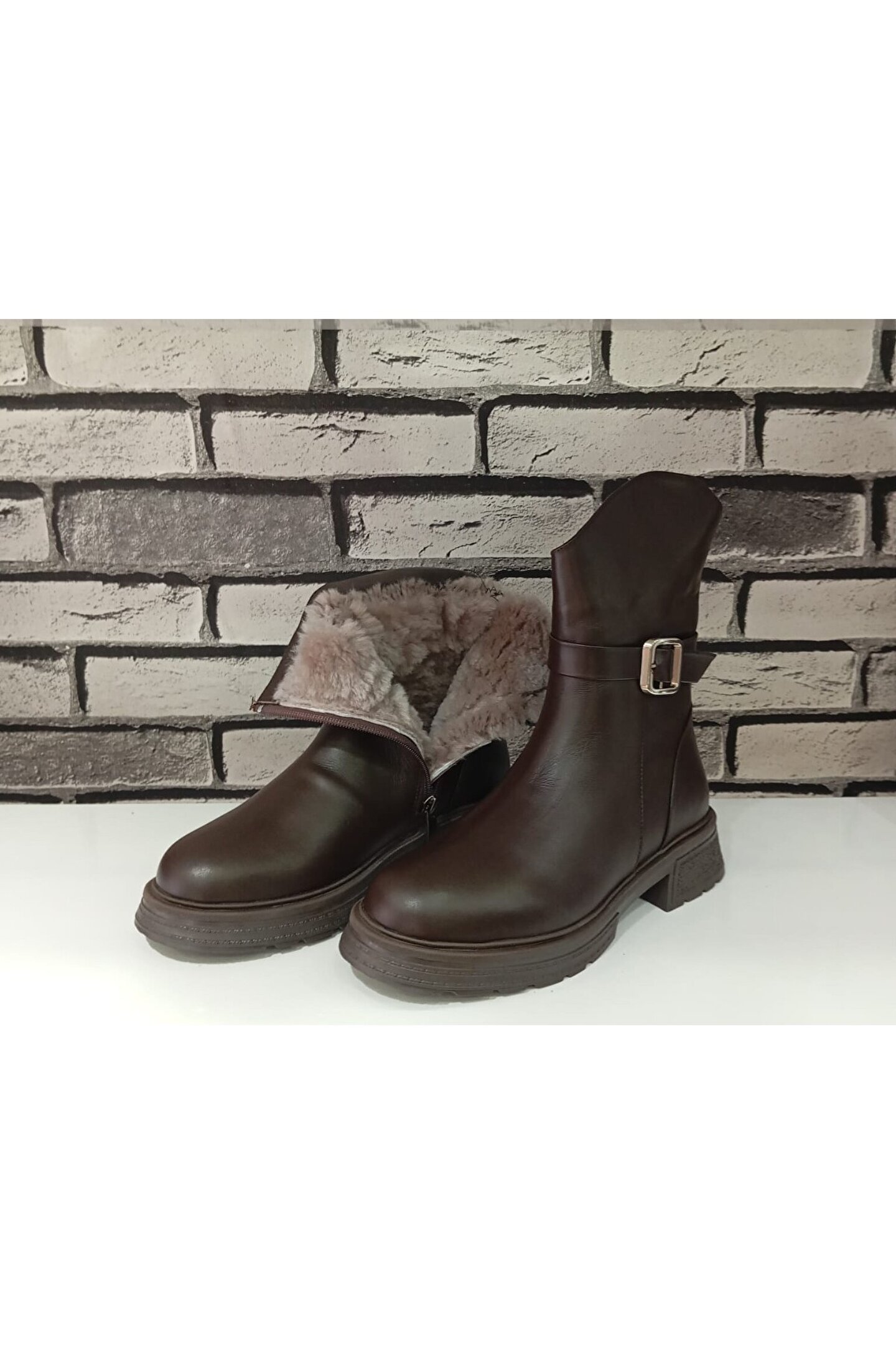 - Günlük kullanım için ideal, casual tarzıyla her ortama uyum sağlayan hakiki deri bot.; - Soğuk kış günlerinde ayaklarınızı sıcak tutan termolight taban materyali ile konforlu adımlar.; - Yuvarlak burun tasarımı sayesinde rahat bir kullanım sunar ve şık görünümünüzü tamamlar.; - Fermuarlı bağlama şekli pratik kullanım imkanı sağlar ve kolayca giyilip çıkartılabilir.; - İç tabanda da hakiki deri kullanılarak ayak sağlığınız düşünülmüştür.; - Kürk detaylarıyla hem şıklığı hem de sıcaklığı bir arada sunar.; - İnce topuklu tasarımı ile zarif bir duruş sergilerken, kısa topuk boyu rahatlık sağlar.; - Genç yaş grubuna hitap eden modern ve dinamik bir stil oluşturur.; - Türkiye'de üretilmiş olup yerli malı olarak gururla sunulmaktadır.; - Düz deseniyle sadelikten yana olanların tercihi olacak şekilde tasarlanmıştır.; - Kutulu şekilde gönderim sağlanarak ürünün korunması ve kolay taşınabilirliği