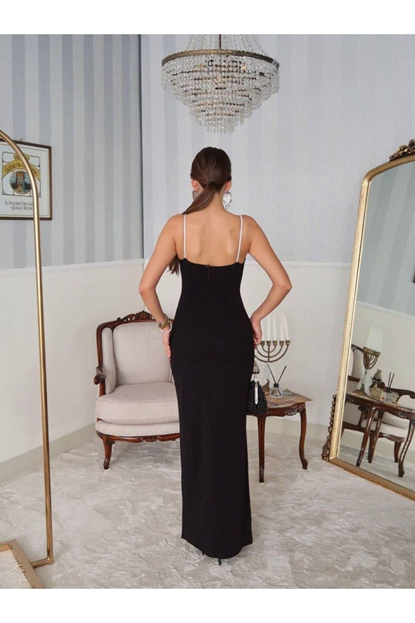 Nova Bazaar Kadın Omuz Askılı Derin Yırtmaç Detay Maxi Boy Elbise
