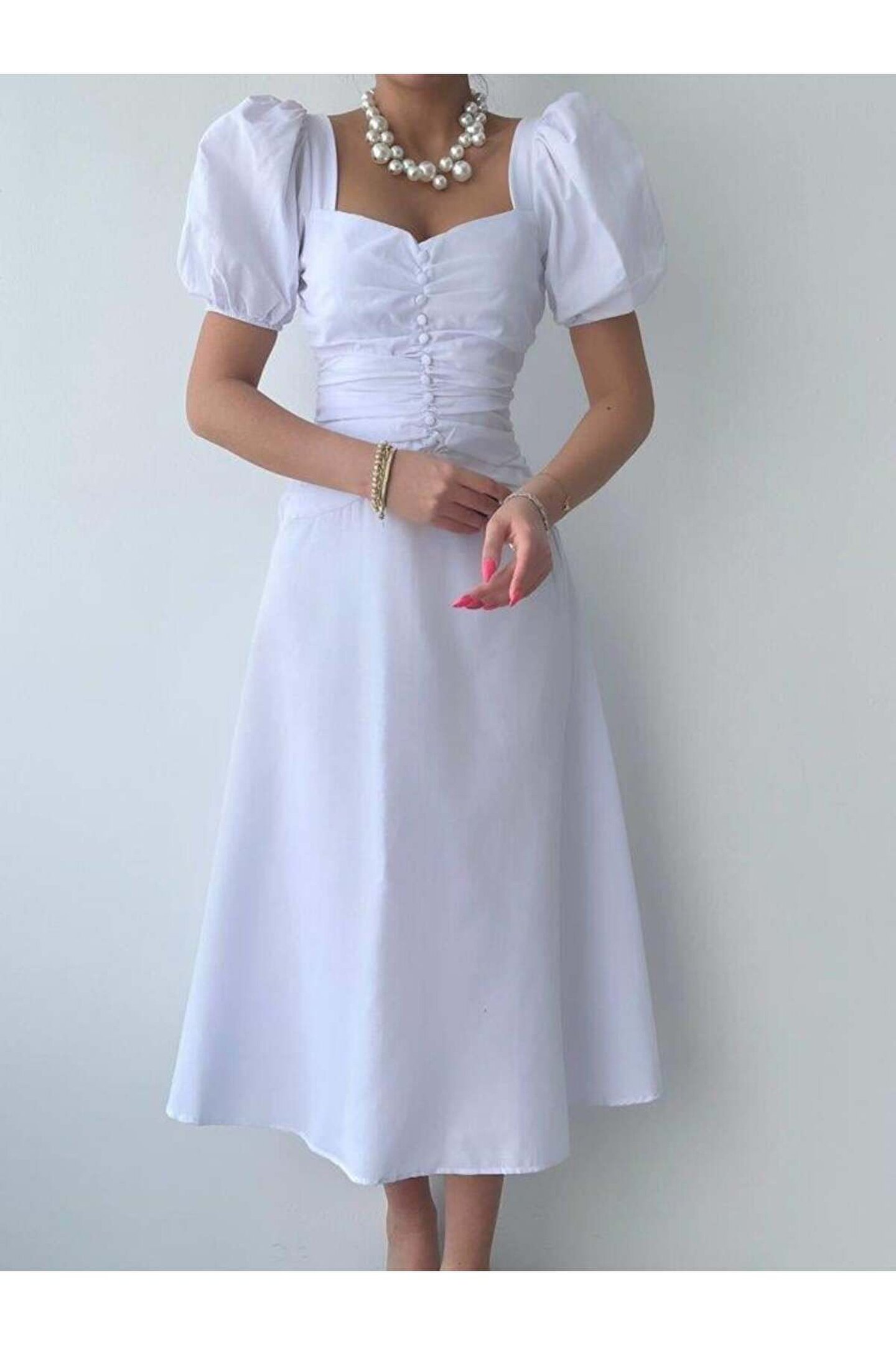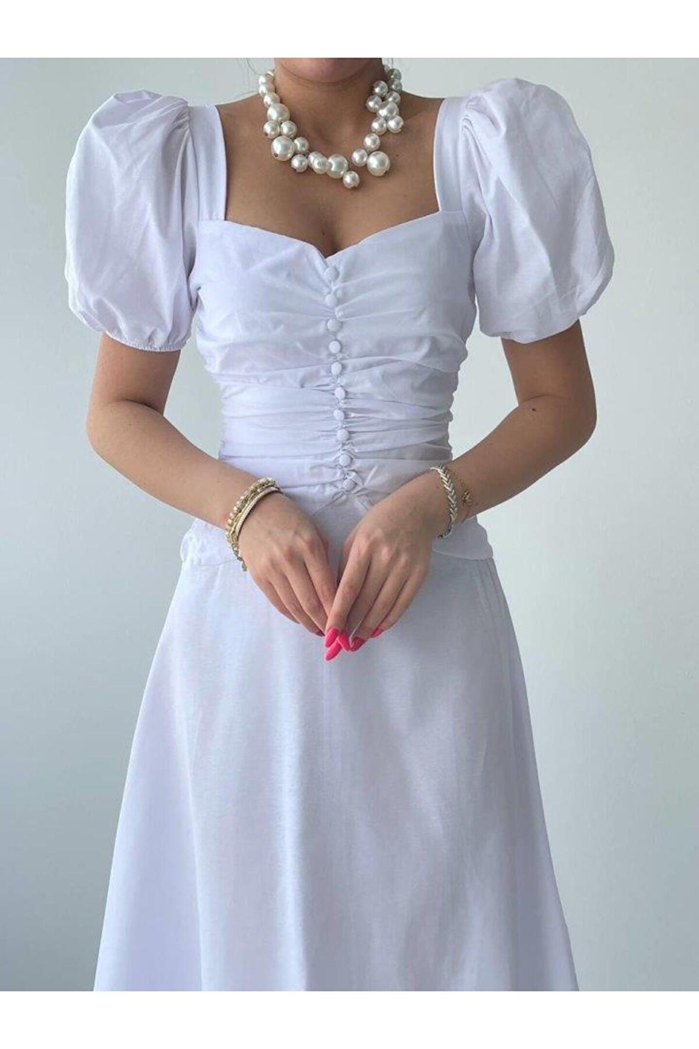 Nova Bazaar Kare Yaka Düğmeli Elbise