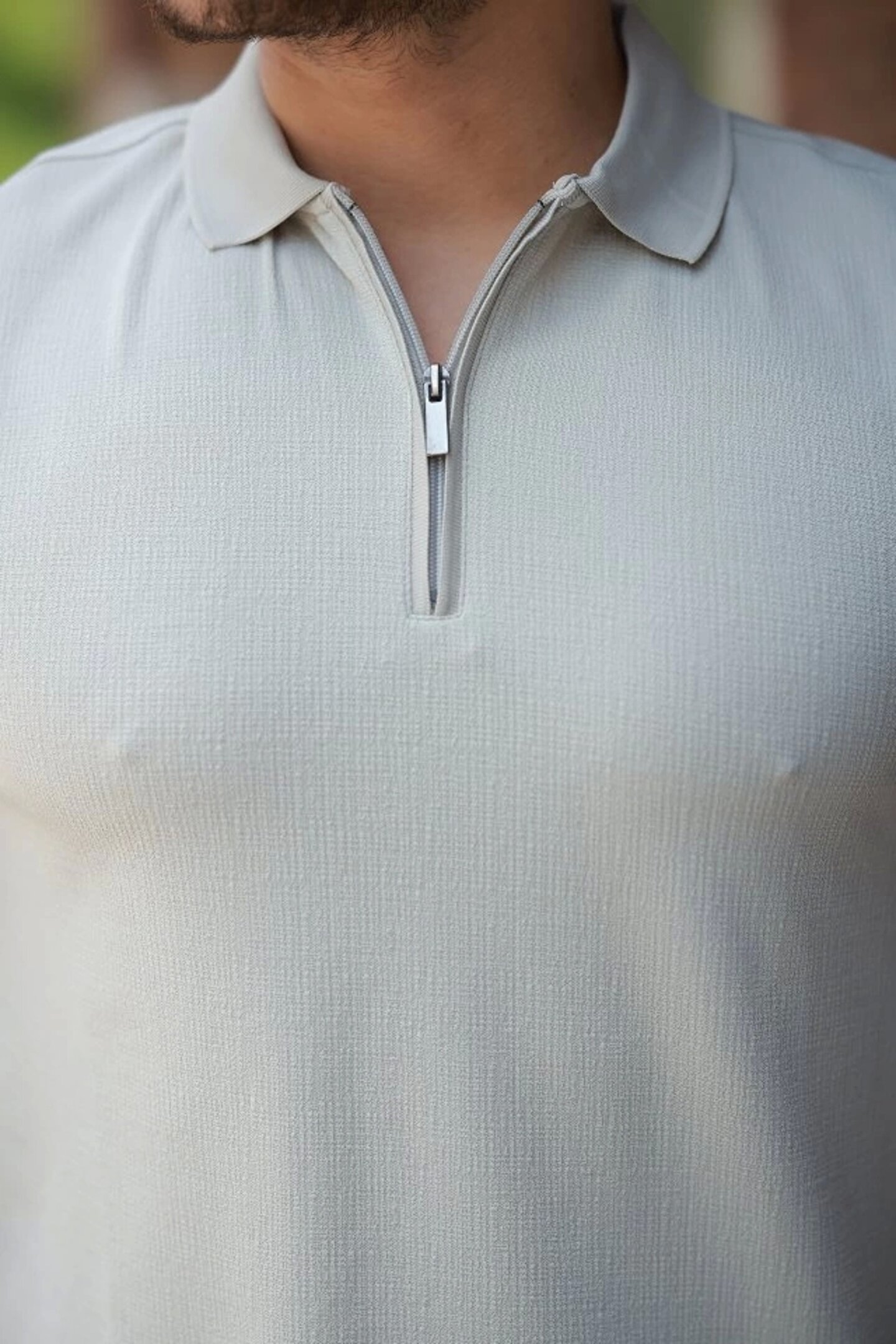 Erkek Fermuarlı Yaka Kısa Kollu Tişört