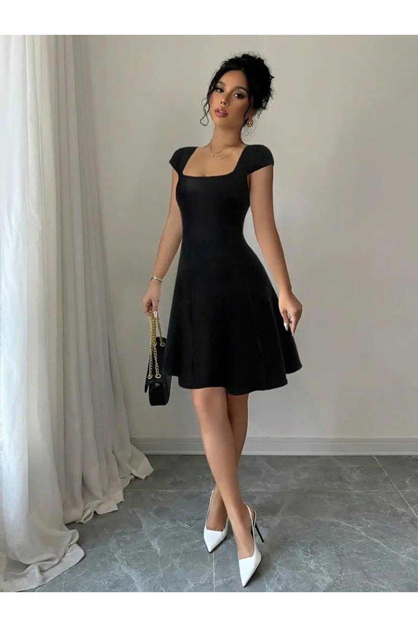 novafems Kadın Kısa Kollu Geometrik Yakalı Janjan Krep Elbise