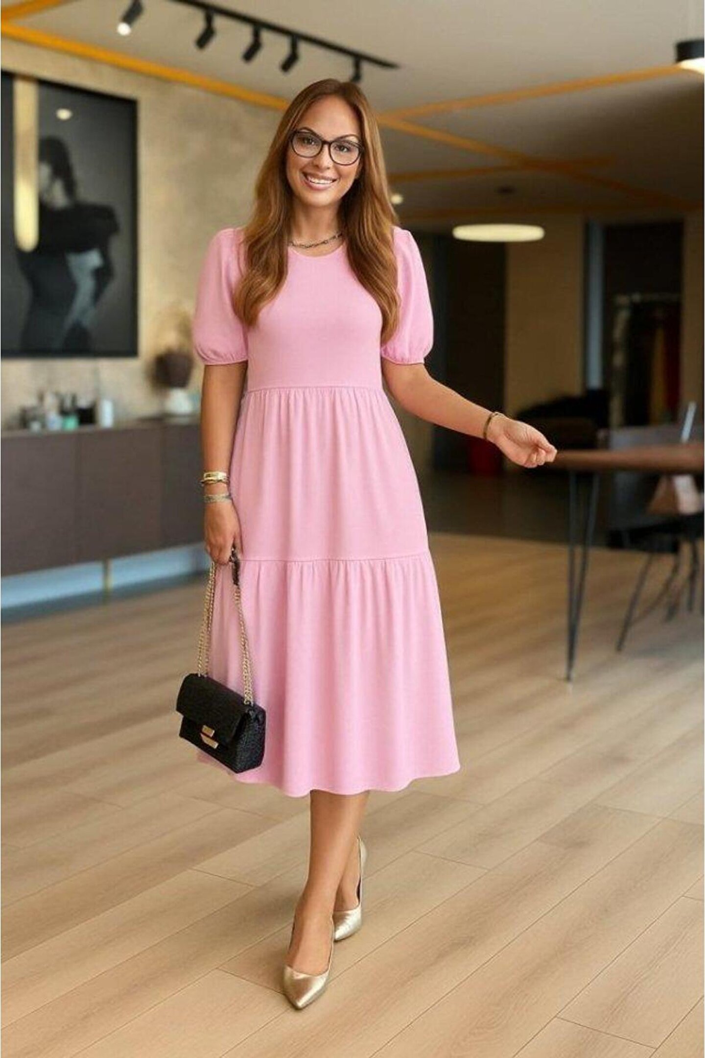 novafems Kadın Kısa Kollu Yakası Açık Katlı Bürümcük Balon Elbise