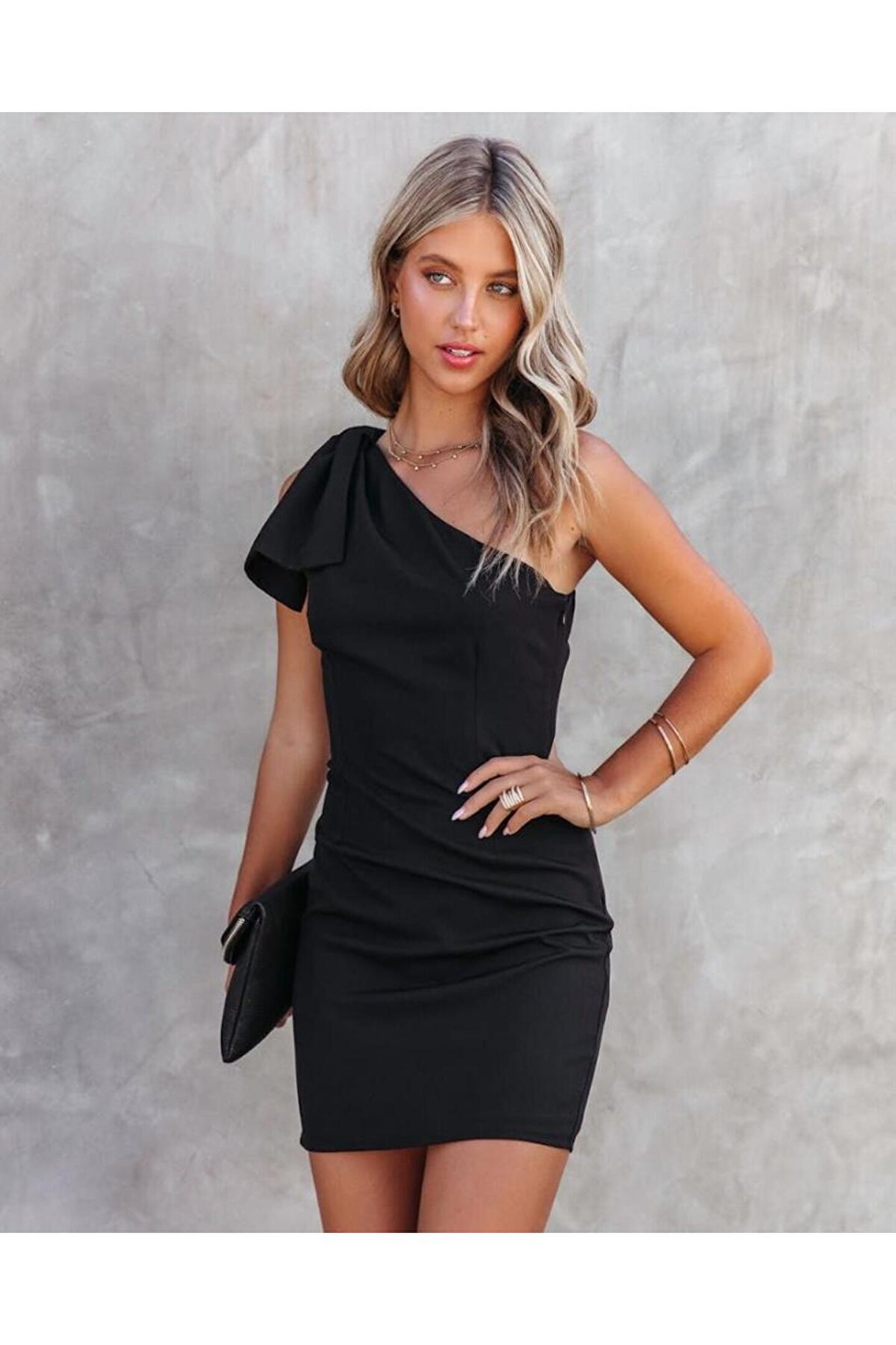 Kadın Tek Omuzu Açık Kelebek Detaylı Janjan Krep Elbise