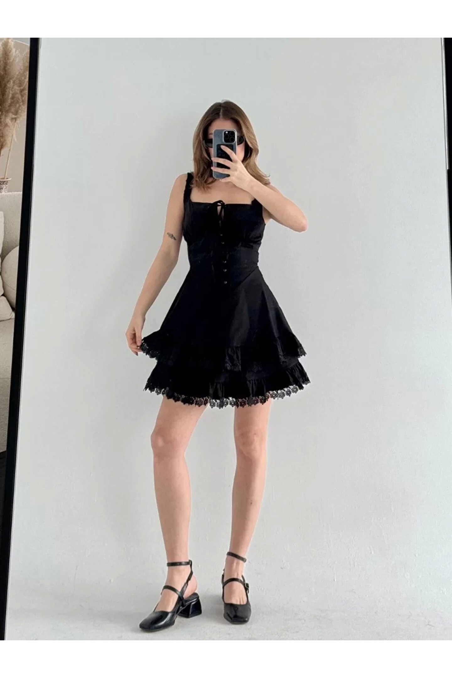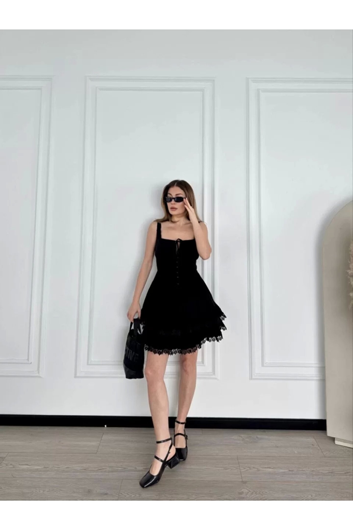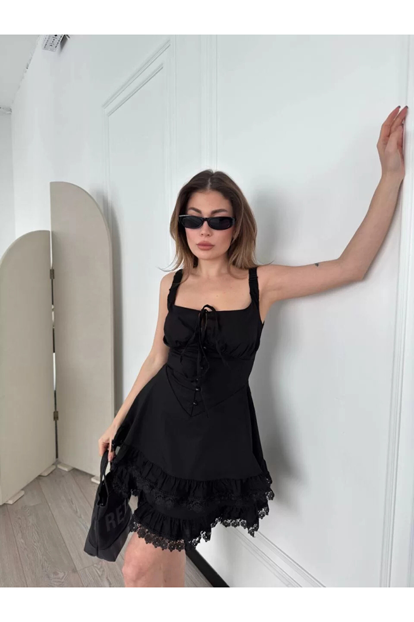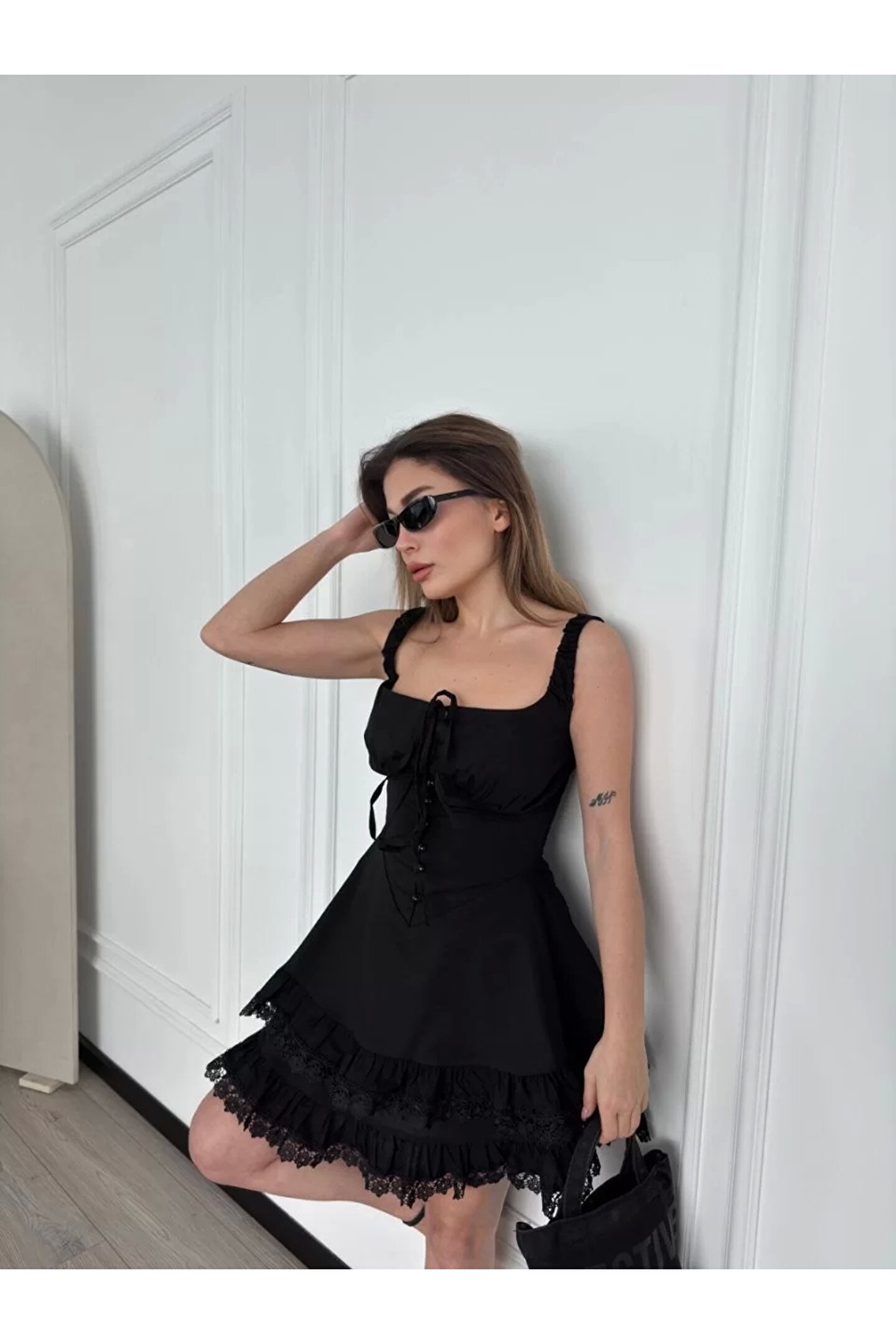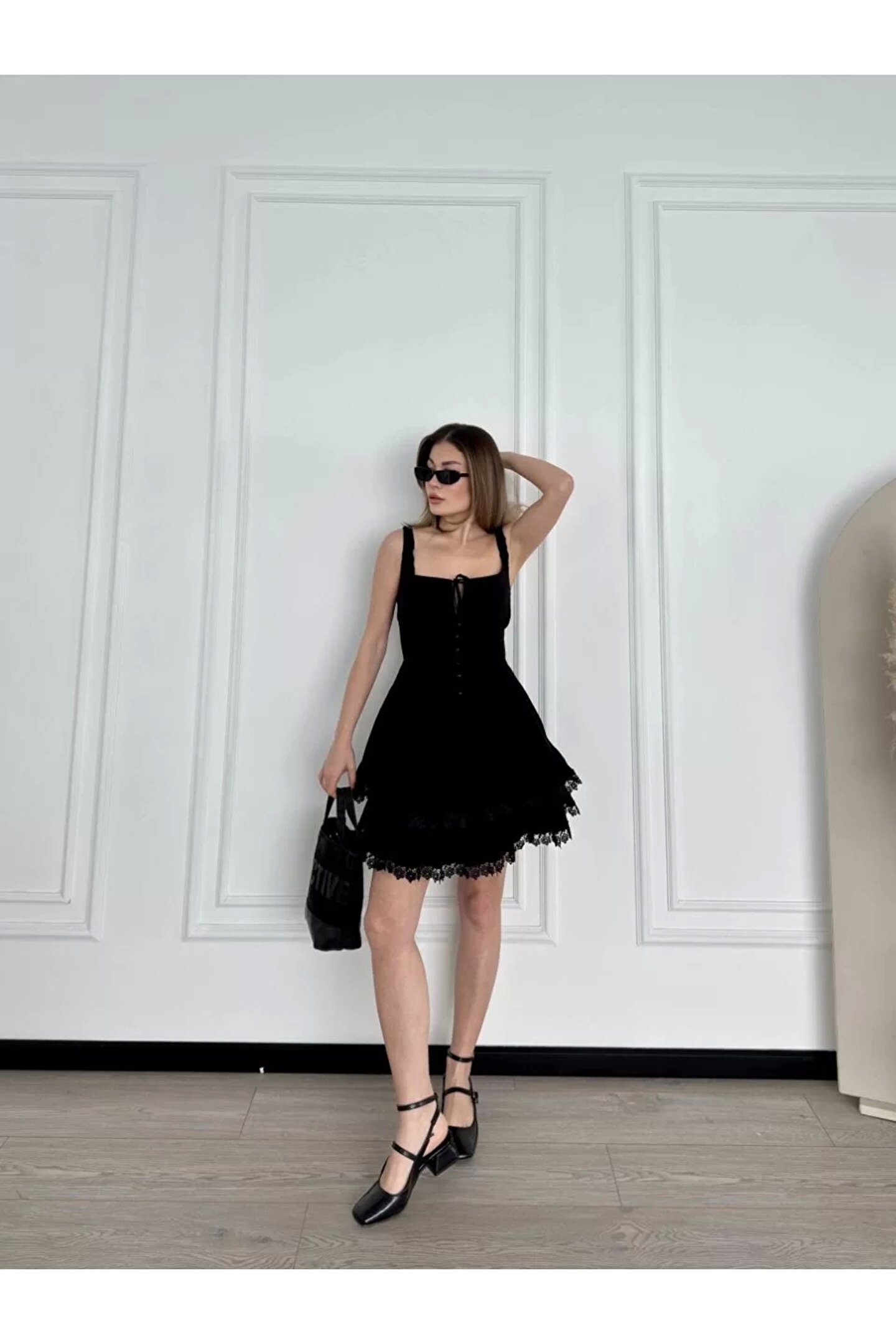 nscollection Mini Askılı Elbise - Siyah