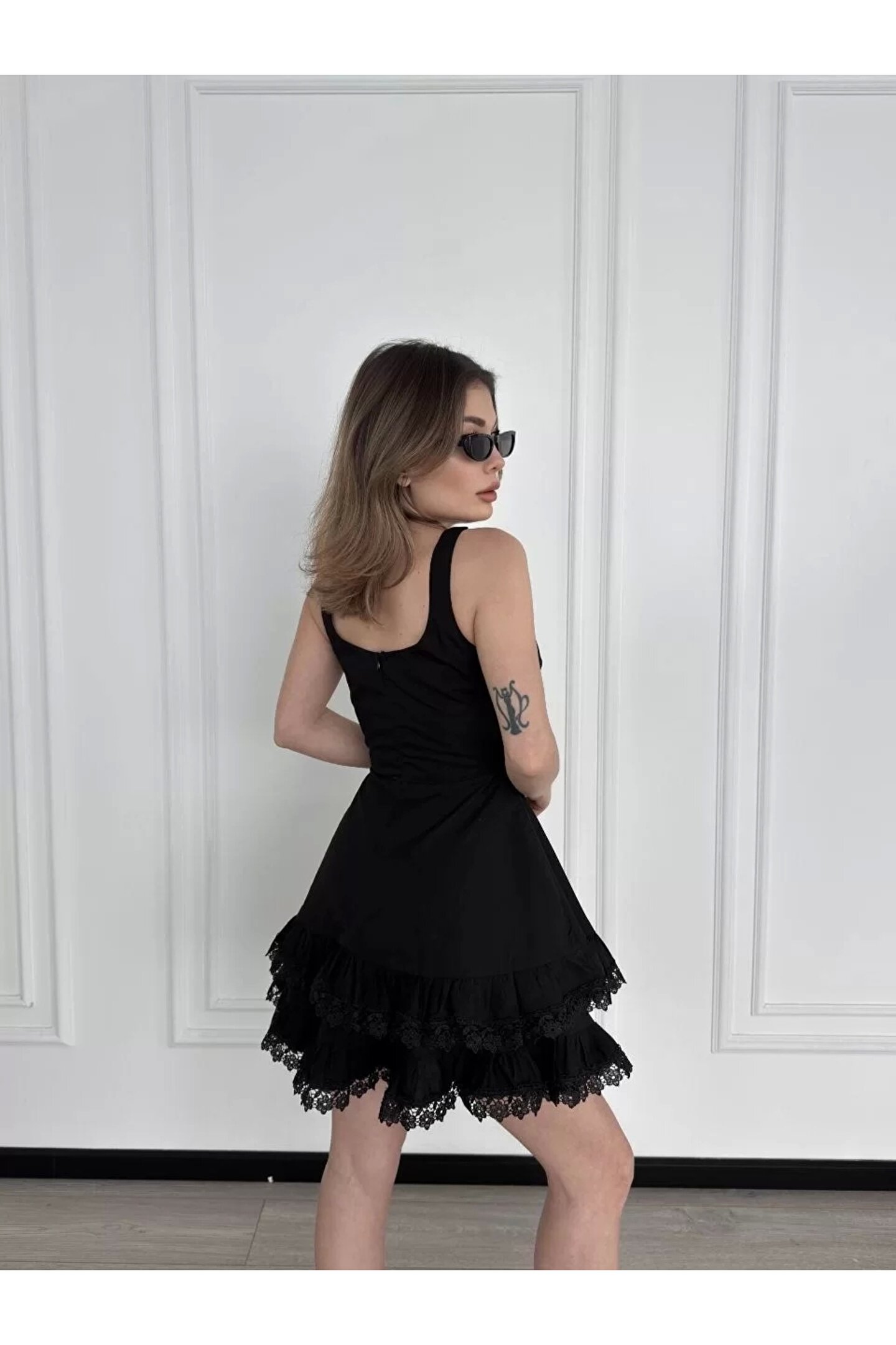 Mini Askılı Elbise - Siyah