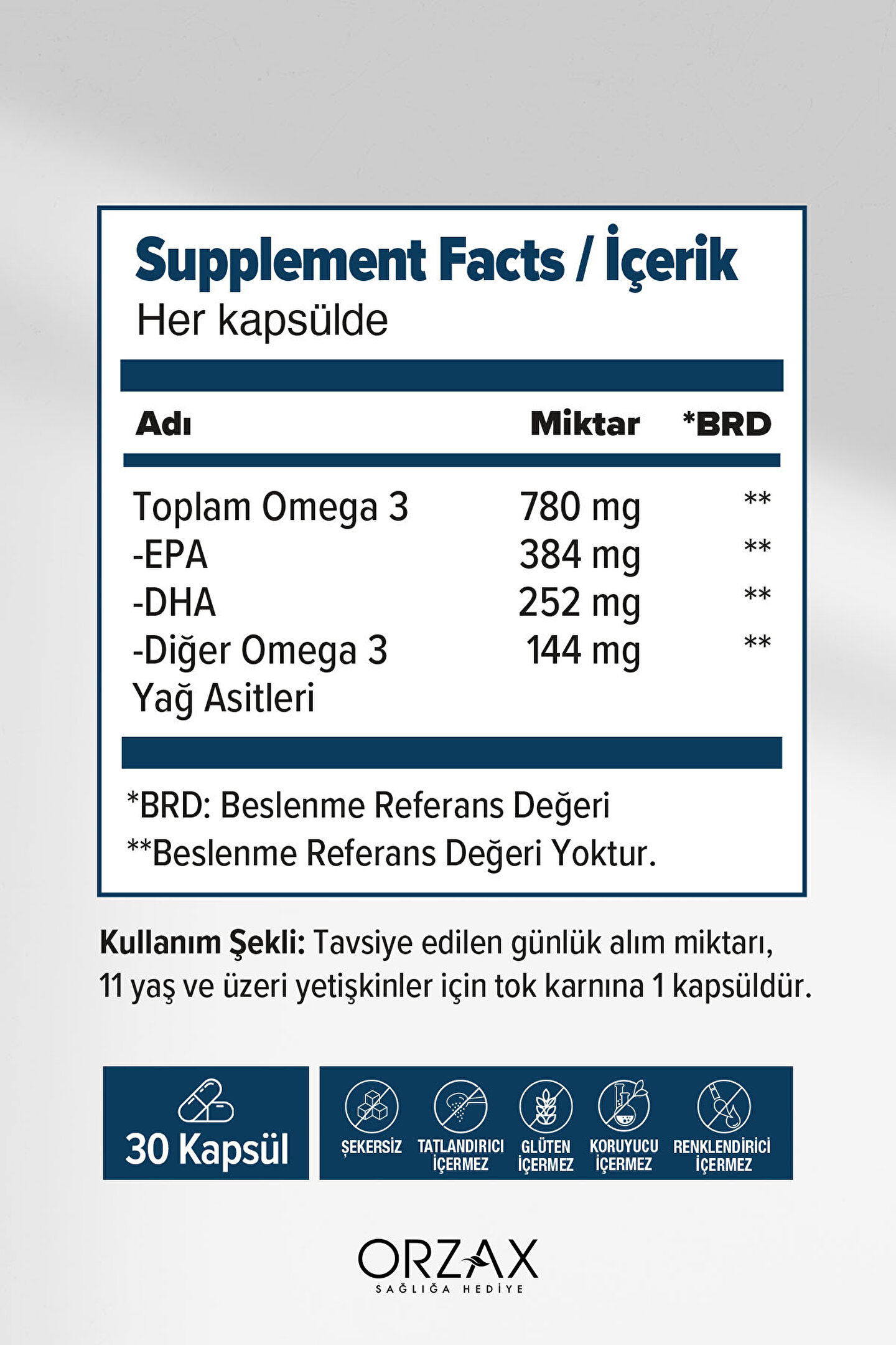 TÜM ÜRÜNLERİMİZ STOKLARIMIZDA MEVCUT OLUP, SAAT 15:00 'A KADAR OLAN SİPARİŞLERİNİZ AYNI GÜN KARGOYA VERİLMEKTEDİR. Ocean Plus Omega 3 1200 mg Balık Yağı 30 Kapsül Ocean Plus Omega 3 1200 mg 30 Kapsül Servis başı 1,2 gram balık yağı içeren Ocean Plus, içeriğinde Omega 3 yağ asitlerini bulunduran bir gıda takviyesidir. Ocean balık yağı üretiminde deodorizasyon tekniği kullanmıştır. Bu sayede balık yağı kokusunun ve ağızda kötü tat bırakma gibi sorunların en aza indirilmesi hedeflenmiştir. Omega 3 yağ asitlerinin görevleri DHA, beyin fonksiyonlarının, görme yetisinin korunmasına katkıda bulunur. EPA ve DHA kalbin normal fonksiyonuna yardımcı olur. (*) Faydalı etkinin sağlanabilmesi için günlük 250 mg DHA tüketilmesi gerekir. (**) Günlük 250 mg DHA ve EPA alımında faydalı etki sağlanır. Ocean Plus Omega 3 1200 mg özellikleri Kapsül başı 384 mg EPA ve 252 mg DHA içeriyor Trigliserid form Deodarizasyon tekniği ile balık yağı tadı ve kokusu en aza indirgenmiş IFOS Kalite Standartları'ndan onaylı üretim Kapsül kaynağı olarak balık jelatini kullanılmıştır. ADI MİKTARI *BRD Toplam Omega 3 780 mg – EPA 384 mg – DHA 252 mg – Diğer Omega 3 Yağ Asitleri 144 mg –