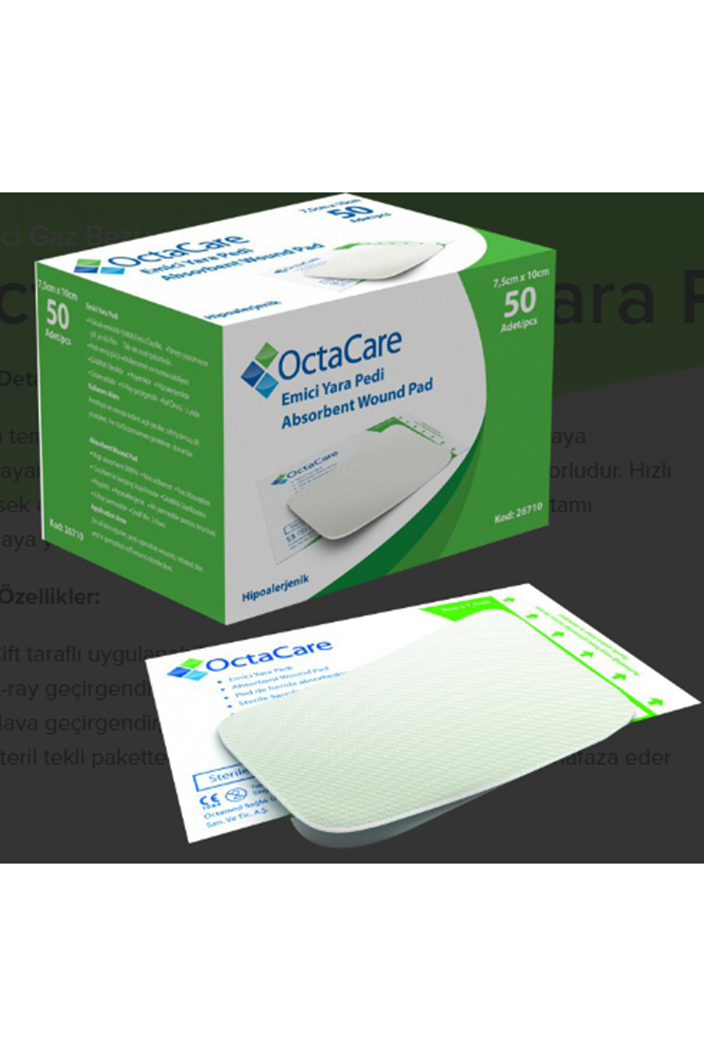 Octacare Medikalcim Emici Yara Pedi 7,5 cm x 10 cm 50 Adet