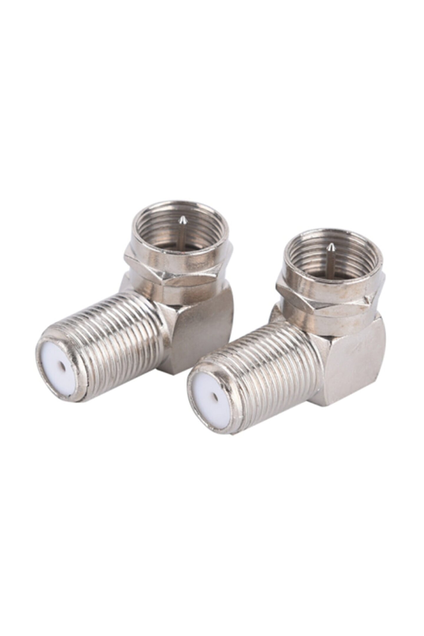 F konnektör l tipi çevirici fiş ( F dişi; F erkek ); 100 adet; l şekli sayesinde kablo kırılmalarını önler; dar alanlarda rahatlıkla kullanabilirsiniz;