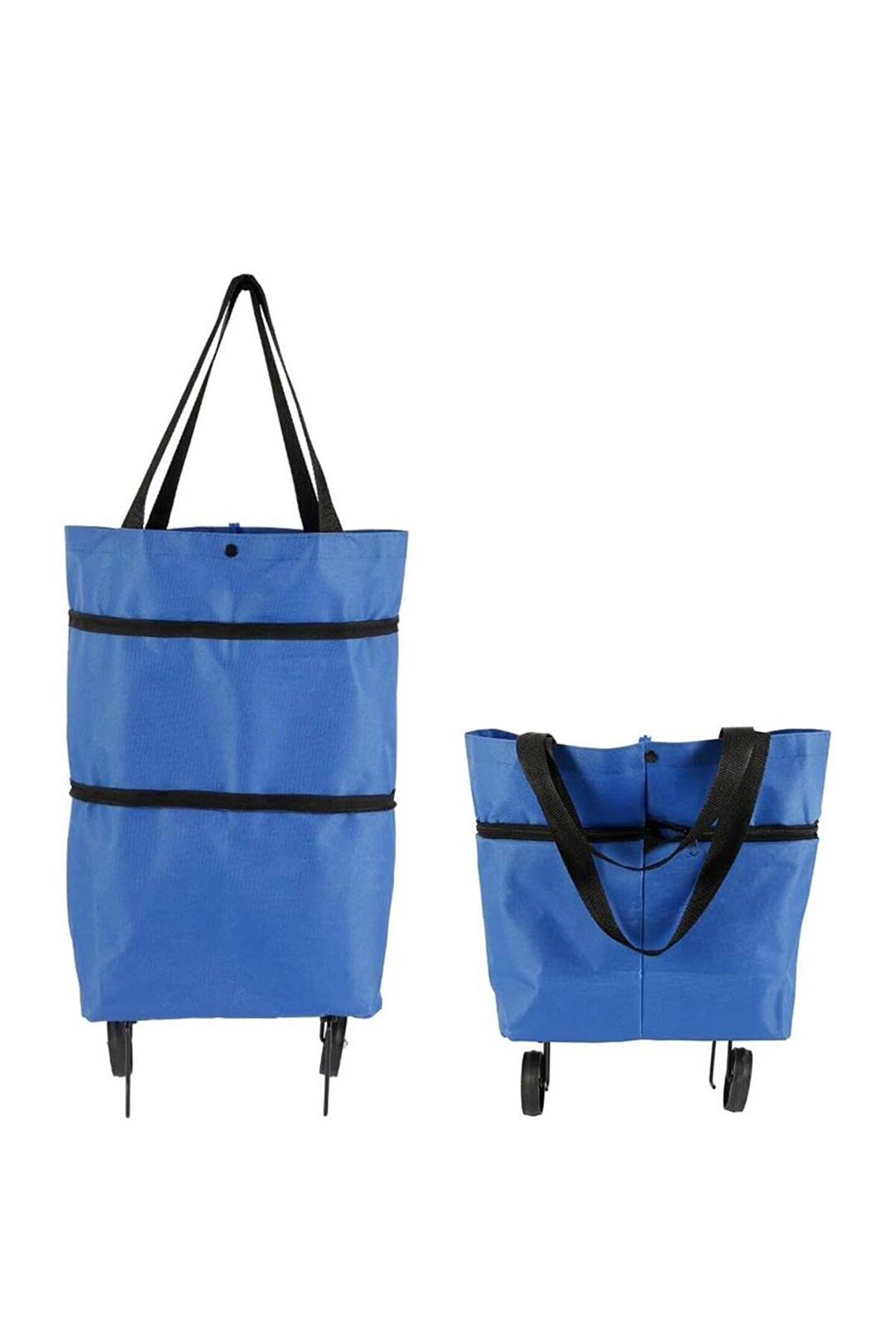 Katlanabilir tekerlekleri sayesinde omuz çantası veya tam boy alışveriş arabası olarak geçiş yapabilirsiniz. Tamamen genişlediğinde kendi üzerinde durabilir. Alt tarafı katlanabilir tekerlek ve düğme kapalı PP levha ile yeterince sağlamdır. İhtiyaç duyduğunuzda, çantanın üzerindeki fermuarı açın ve alışveriş çantasını genişletin.