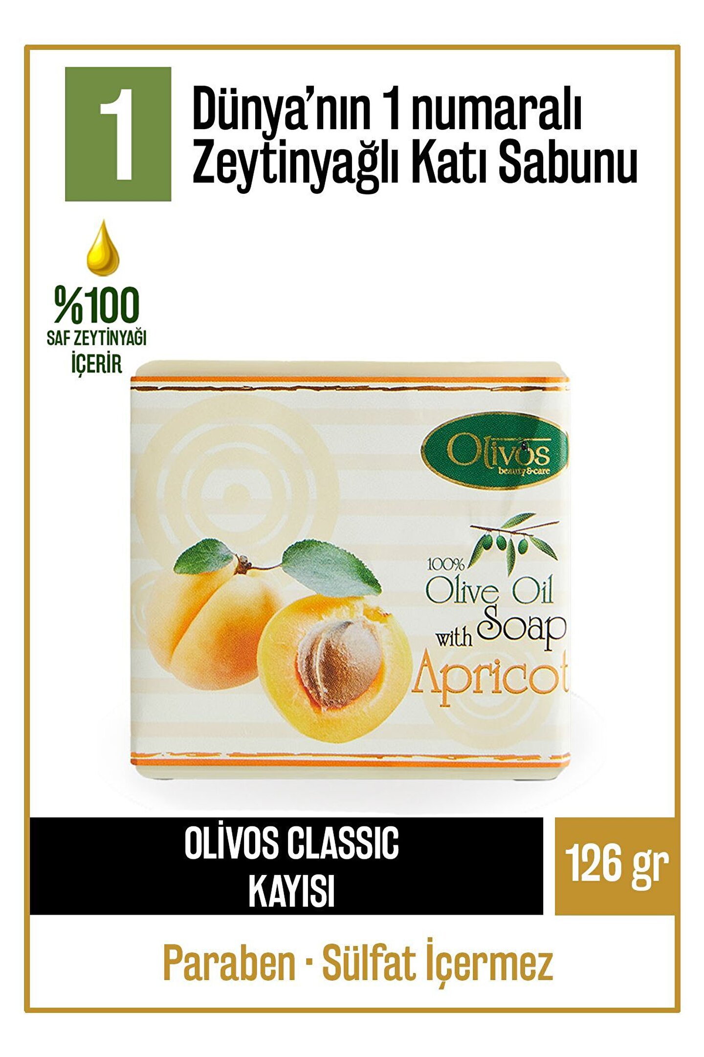 Olivos Kayısılı Zeytinyağı Sabunu, eşsiz ferahlatıcı kokusunun yanında yoğun nemlendirme özelliğiyle banyo keyfinize keyif katmak için en üst kalite aromatik yağlar ve Edremit’in % 100 saflıktaki zeytinyağlarından el yapımı olarak üretildi. ; Derinlemesine temizlik sağlayan bu doğal sabunun içeriğinde kalsiyum, magnezyum, karoten ve beta koroten bulunmaktadır. ; Ciltteki kırışıklıklara ve diğer yaşlanma etkilerine karşı banyonuzda bir dost gibi yanınızda bulunacak Olivos Kayısılı Zeytinyağı Sabunu kayısının kendine has aromasının ferahlatıcılığı, cildinizde yaratacağı yumuşaklık etkisiyle kalbinizi kazanacak. ; Bu özel sabun son derece şık ve kaliteli 126 gramlık ambalajında temizlik ve sağlık ışıltıları saçıyor.;