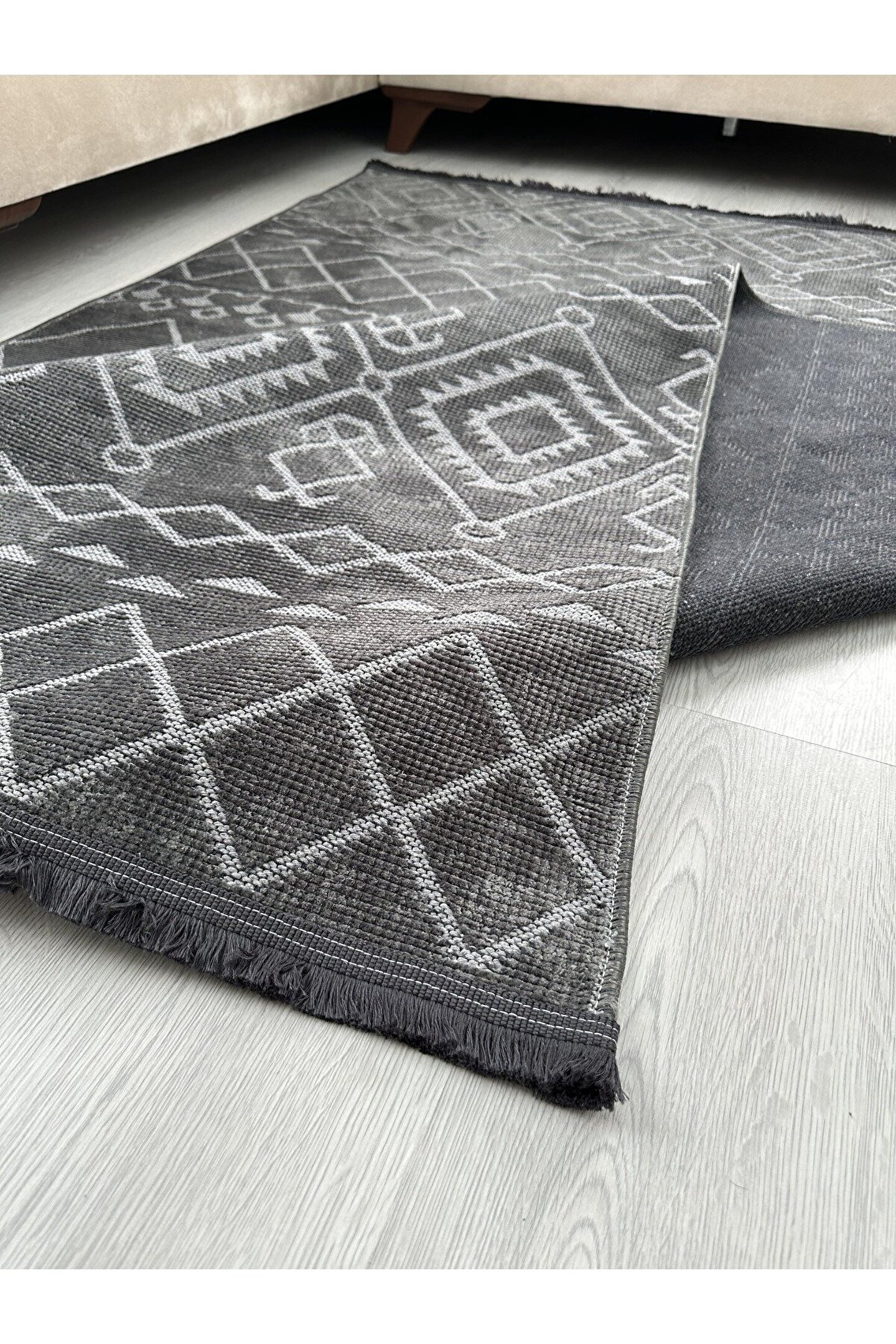 Olvido Home Modern İskandinav Desenli Yıkanabilir Kaymaz Dokuma Taban Şönil Halı Antrasit