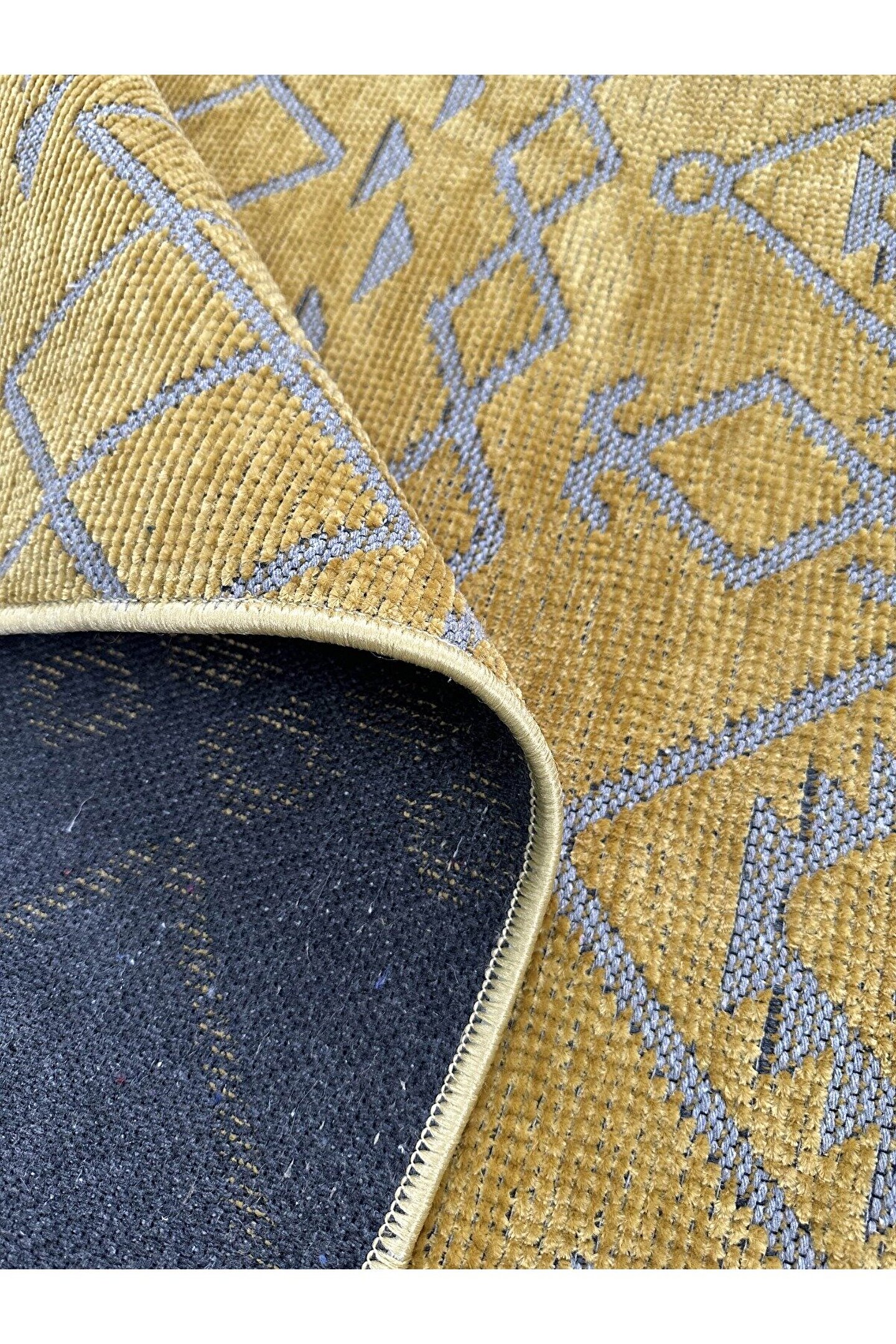 Olvido Home Modern İskandinav Desenli Yıkanabilir Kaymaz Dokuma Taban Şönil Halı Hardal
