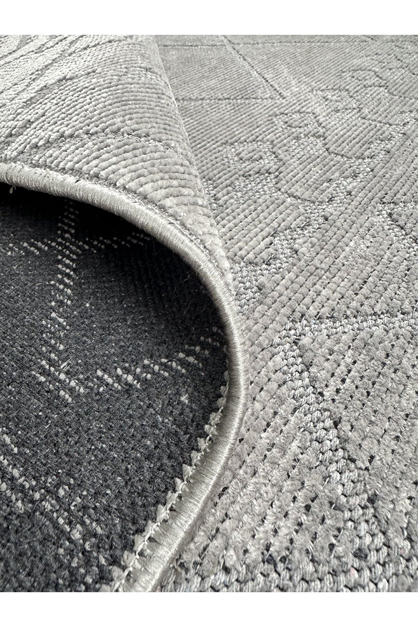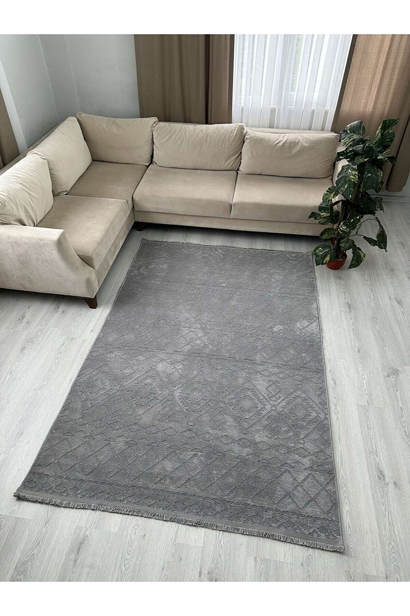 Olvido Home Modern İskandinav Desenli Yıkanabilir Kaymaz Dokuma Taban Şönil Halı Kapalı Gri