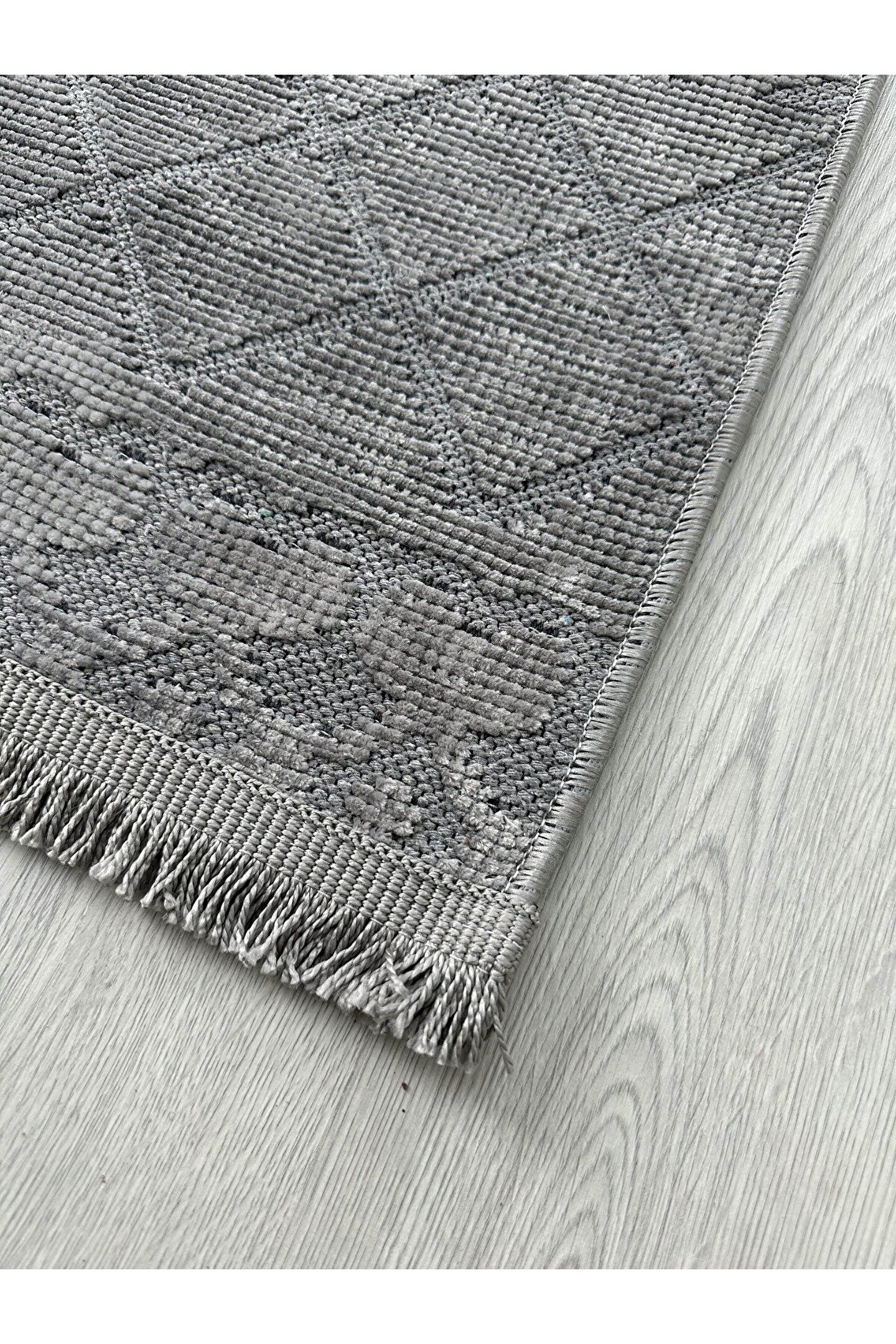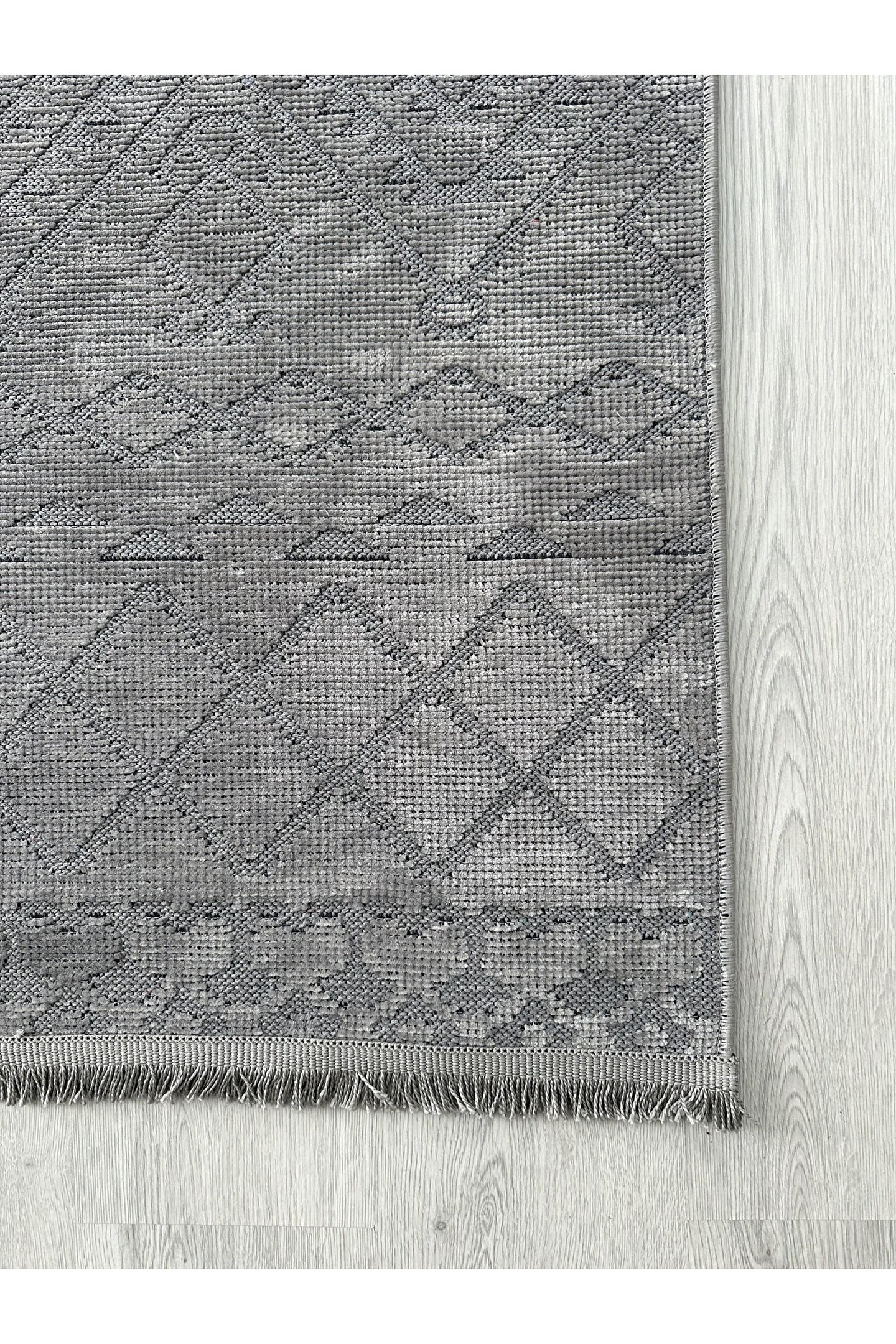 Olvido Home Modern İskandinav Desenli Yıkanabilir Kaymaz Dokuma Taban Şönil Halı Kapalı Gri
