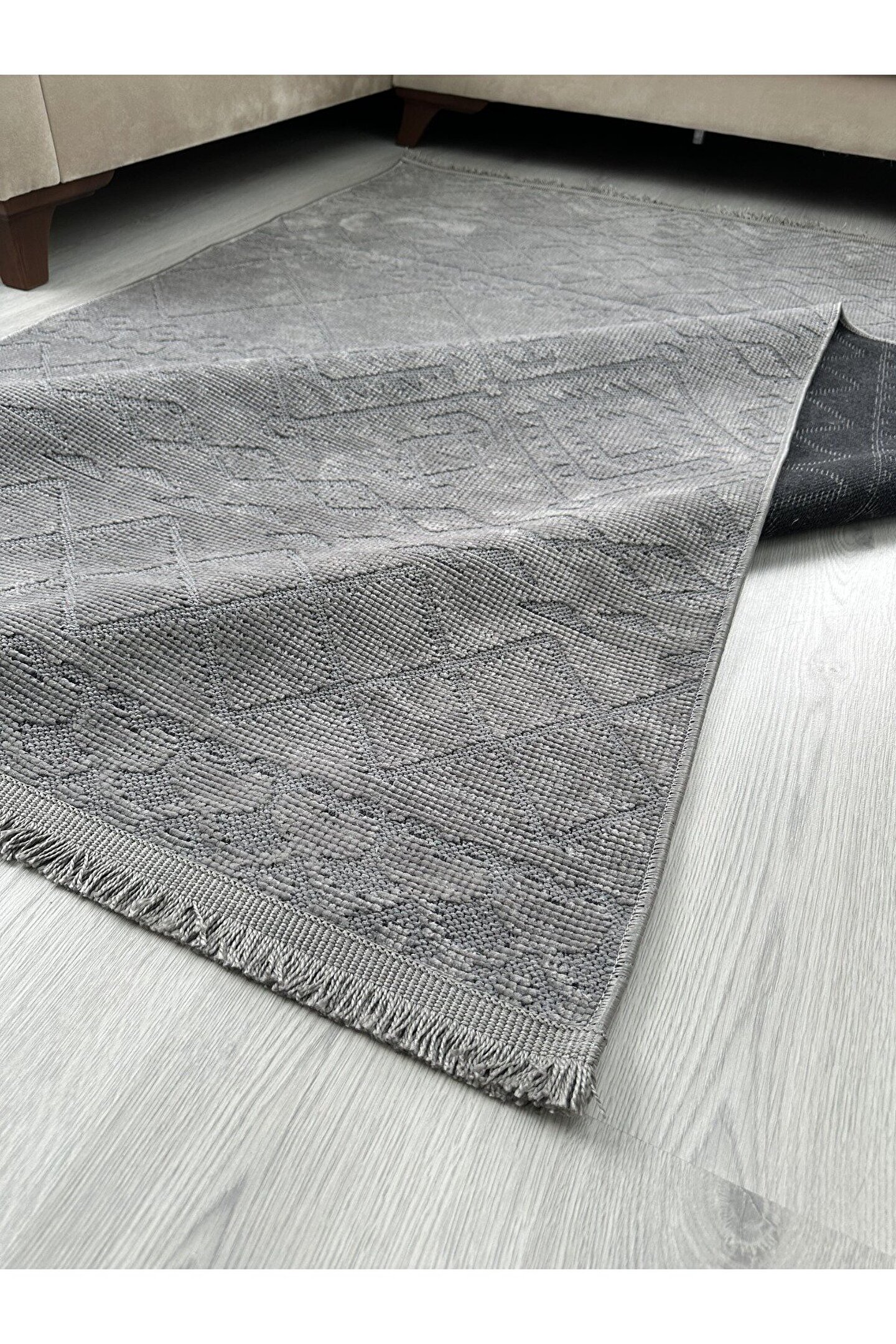 Olvido Home Modern İskandinav Desenli Yıkanabilir Kaymaz Dokuma Taban Şönil Halı Kapalı Gri