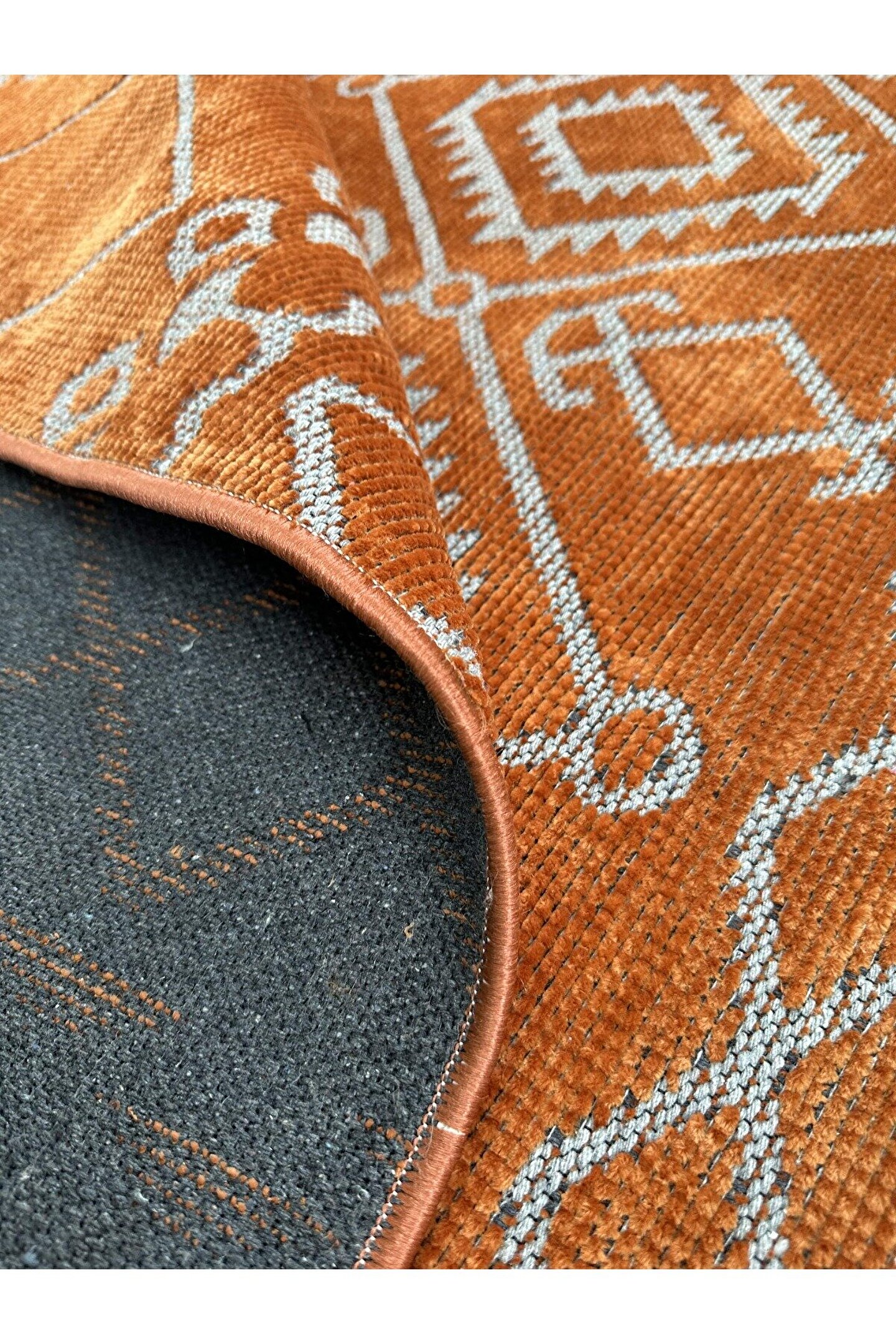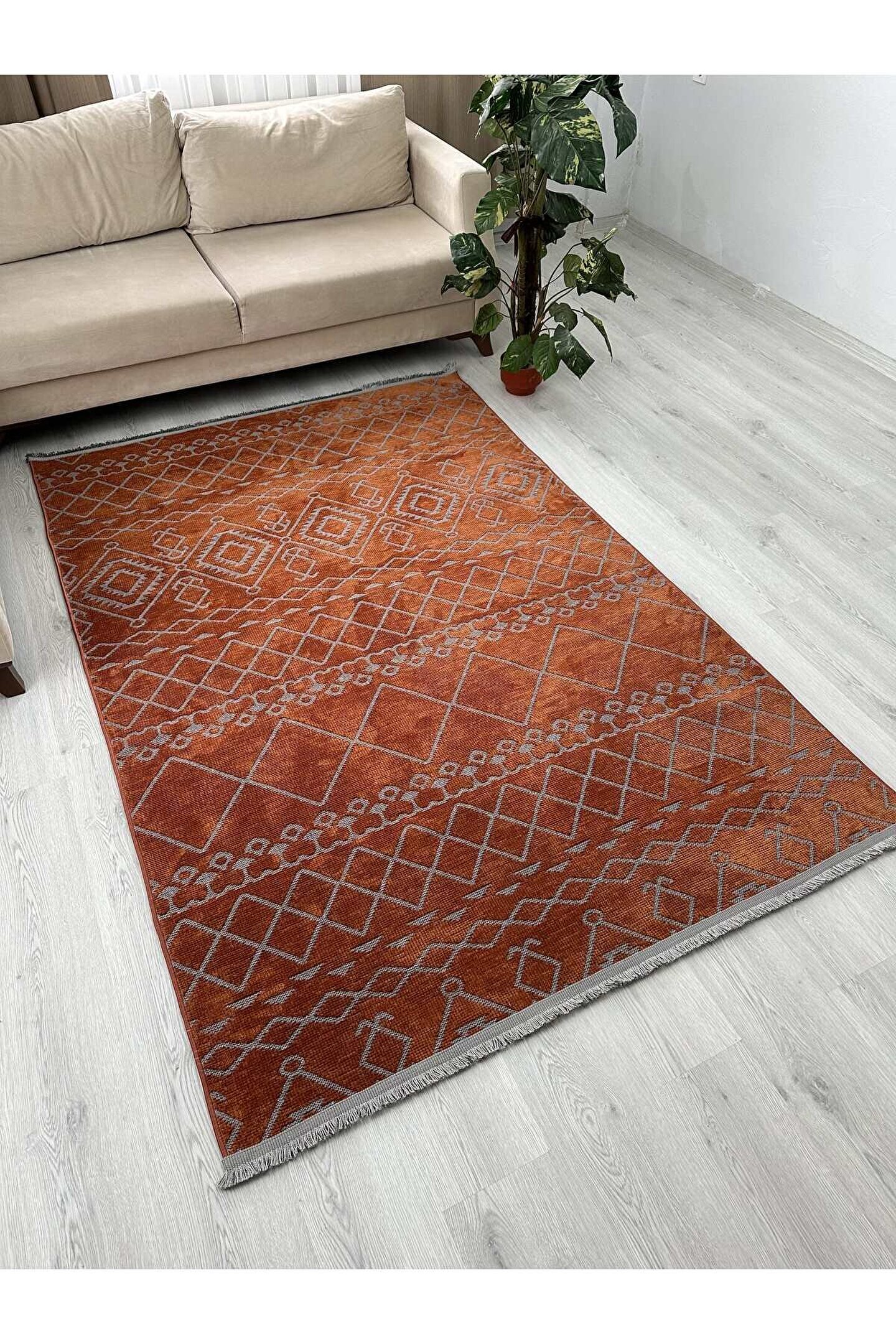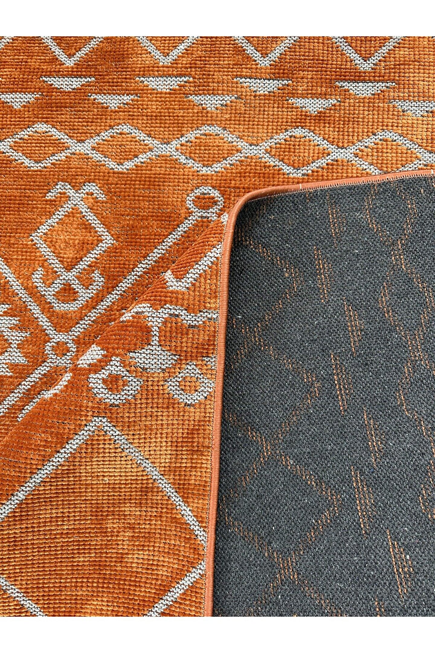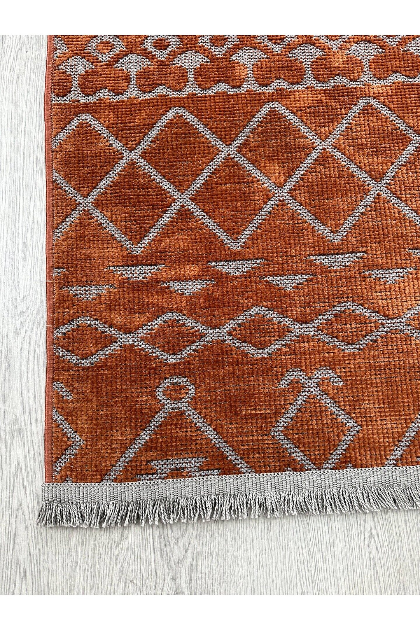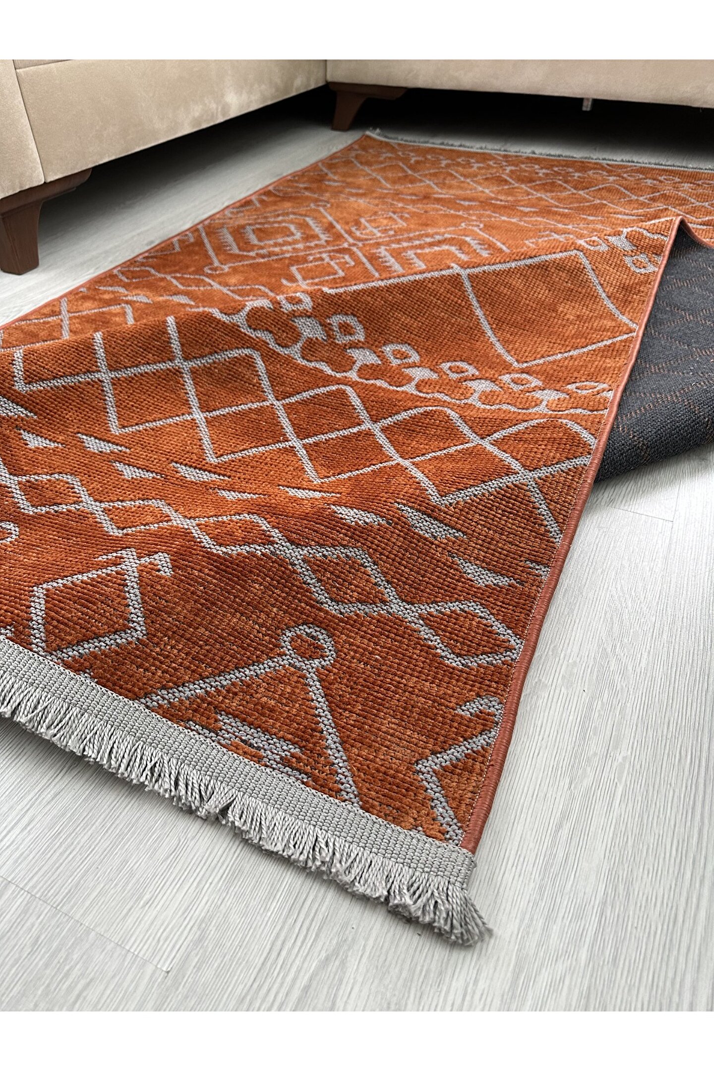 Olvido Home Modern İskandinav Desenli Yıkanabilir Kaymaz Dokuma Taban Şönil Halı Kiremit