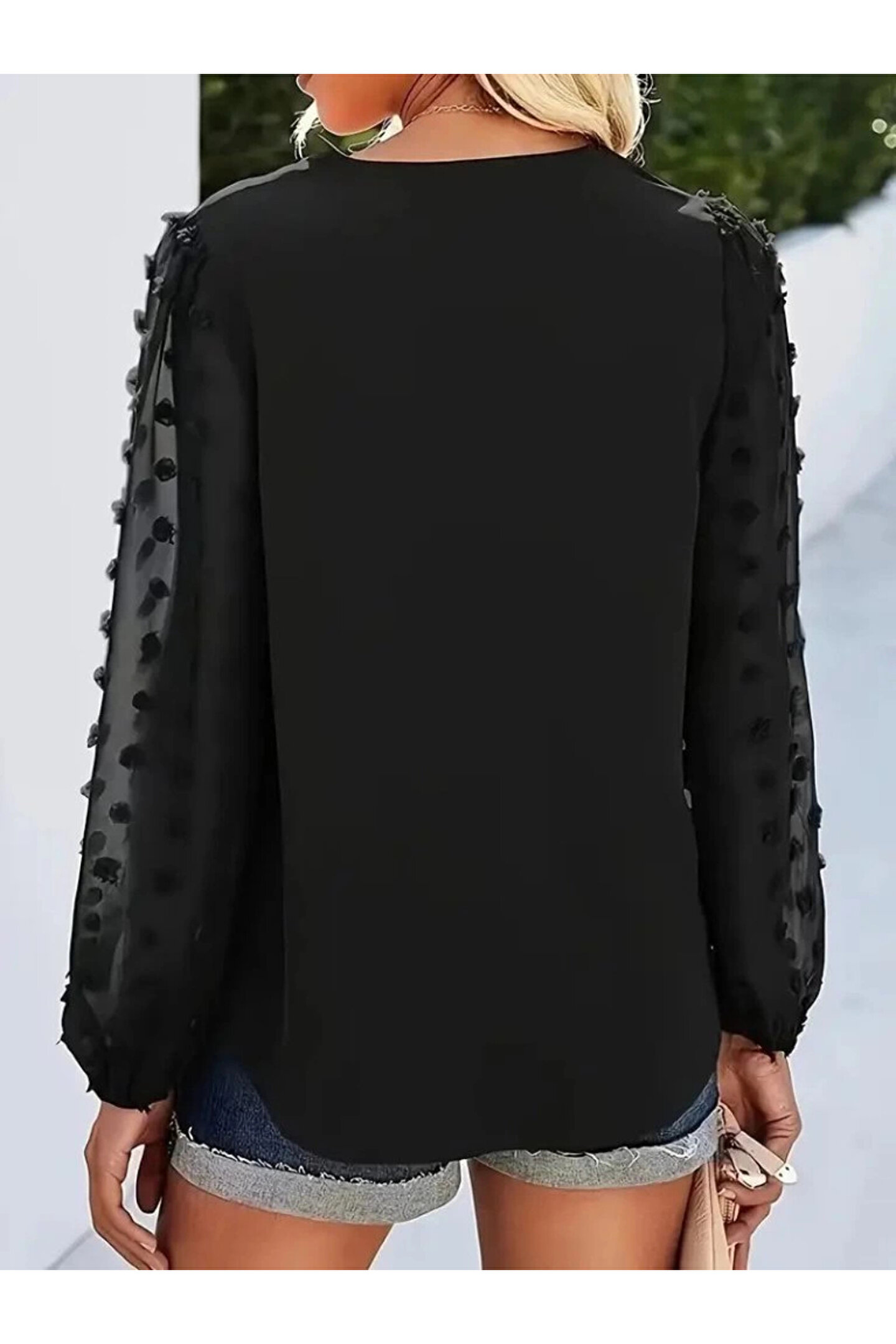Kadın Uzun Kollu V Yakalı Kolları Popon Detaylı Sandy Bluz