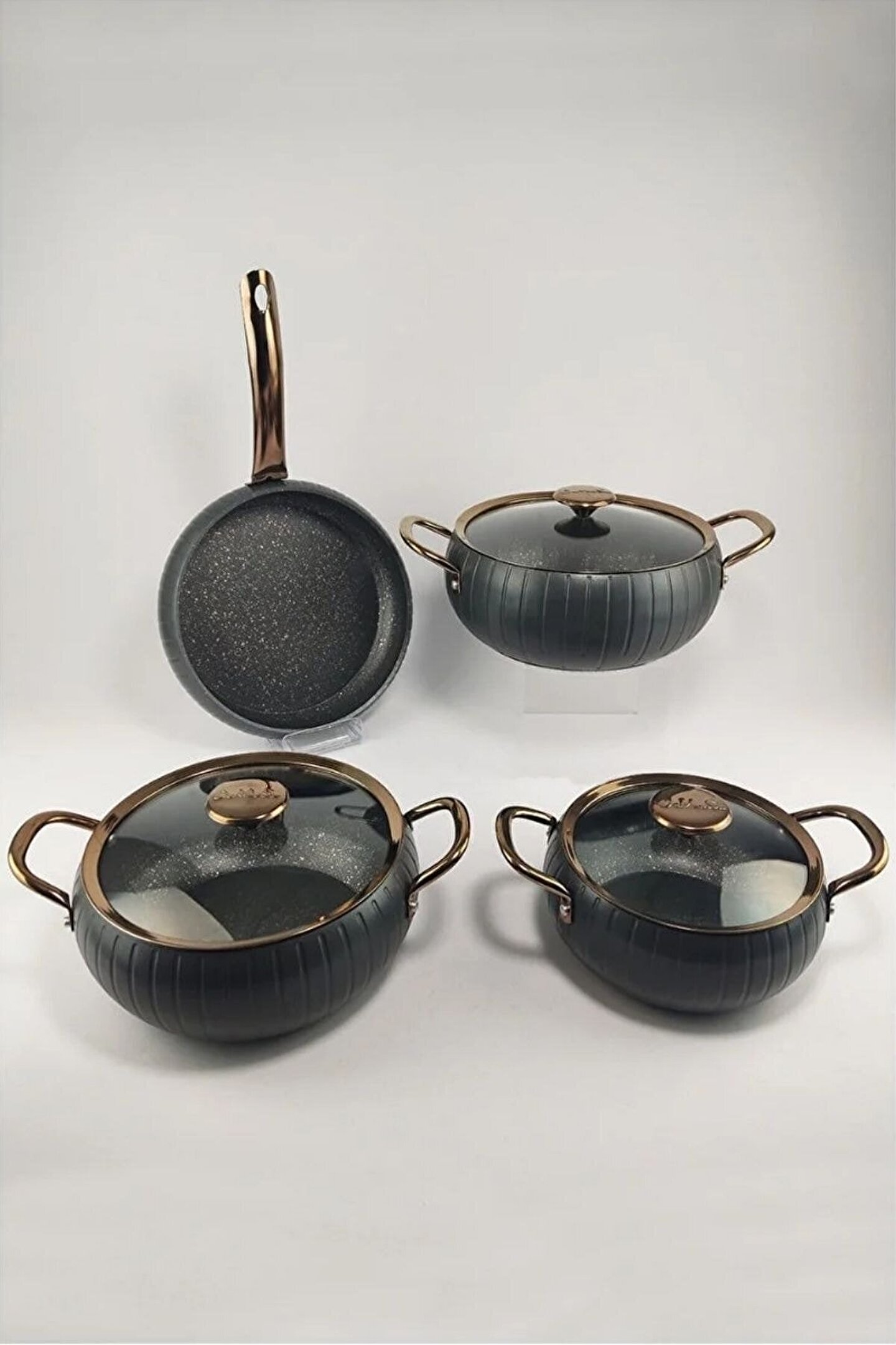 Oms Meridian Granit Antrasit Bakır 7 Parça Tencere Seti 3528 Maximal tasarimi ve ustun yanmaz yapismaz ic yuzeyi ile yag kullanmadan dahi et, yumurta ve sebzelerinizi saglikli bir sekilde pisirebileceginiz Meridian Tencere Seti 3 tencere 1 tava toplam 7 parça 20; 9cm 24; 10cm 26; 11cm 26; 6,5cm sağlıklı doğal ve kaliteli 4 katlı yapışmaz granit iç yüzey yüksek ısıya dayanıklı estetik yapışmaz enerji tasarufu sağlayan aliminyum gövde;;