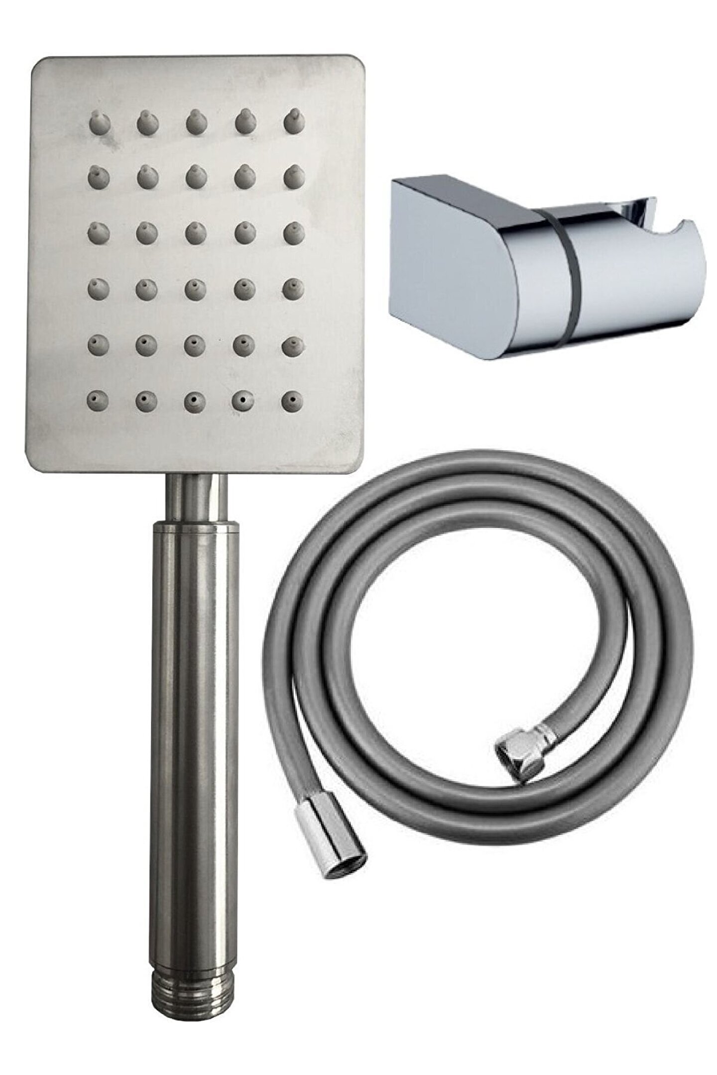 Krom Paslanmaz Duş Başlığı ve Pvc Hortumlu Takım, L Mafsal ile kolay kullanım