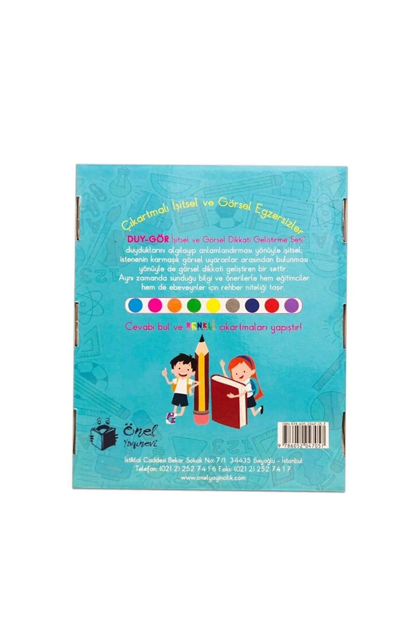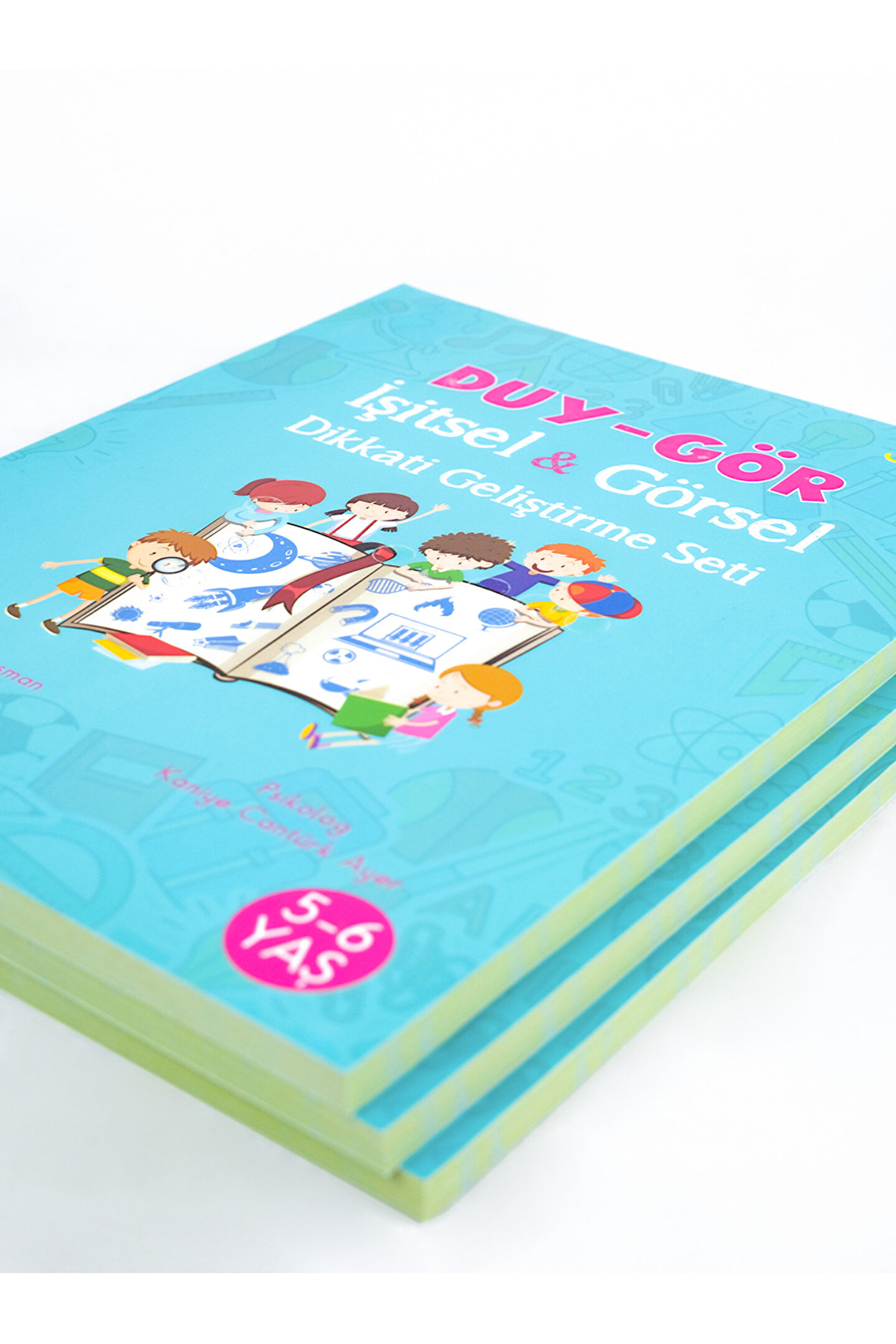 "DUY; GÖR" , çocukların uygulayıcı yardımıylakullanabileceği bir eğitim setidir; Setin içerisinde üç kitap yer almaktadır; Kitaplar kendi içinde bir sistematiğe sahip olup, kolaydan zora doğru gidenfarklı türde egzersizler içermektedir; Uygulama sırasında yönergeler veyönergelere ait maddeler, özel olarak çocuklara bir uygulayıcı tarafındanokunur; İhtiyaç halinde uygulayıcı ilgili egzersize ait ilk maddeyi örnek maddeolarak açıklayabilir, geriye kalan tüm maddeler ise çocuk tarafındancevaplandırılır; Her egzersize ait soruların bulunduğu sayfanın alt kısmında yapılançalışma neticesinde elde edilecek kazanım ve öneriler, diğer sayfada isesorulara ait cevapları içeren görseller yer almaktadır; Kitaplarda uygulamayı oyunlaştırarak daha eğlenceli hale getirmekamacıyla bir kontrol sistemi oluşturulmuştur; Her görselin altında kendine aitbir renk bulunmaktadır; Kitapların arkasında çıkartmalı her egzersiz içinhazırlanmış olan renkli çıkartmaların bulunduğu sayfalar mevcuttur; Çocuk,doğru cevabı içeren görselin altındaki renge uygun olan çıkartmayı alıp,görsellerin altında bulunan cevaplar için ayrılmış alana sırasıyla yapıştırır; İlgili egzersizdeki tüm sorular bu şekilde cevaplandıktan sonra arka sayfadayer alan cevap anahtarından kontrol edilir; Ayrıca kitaplarda ince motor becerileri ve el; göz koordinasyonunugeliştirmeye yönelik çalışmalar da yer almaktadır; Bu çalışmalarda kontrolsistemi bulunmamaktadır, çocuğun istenileni kalem kullanarak cevaplamasıbeklenmektedir; Uygulama esnasında uyulması gereken, belirlenmiş bir zaman sınırıolmamakla birlikte, uygulayıcı mevcut grubun ve egzersizin zorluğuna bağlıolarak uygun bir zaman aralığı belirler; Setin aynı zamanda bireysel vekolektif olarak uygulanabilir oluşu, hem eğitimcilere hem de ebeveynlerekullanım kolaylığı sunmaktadır;
